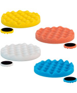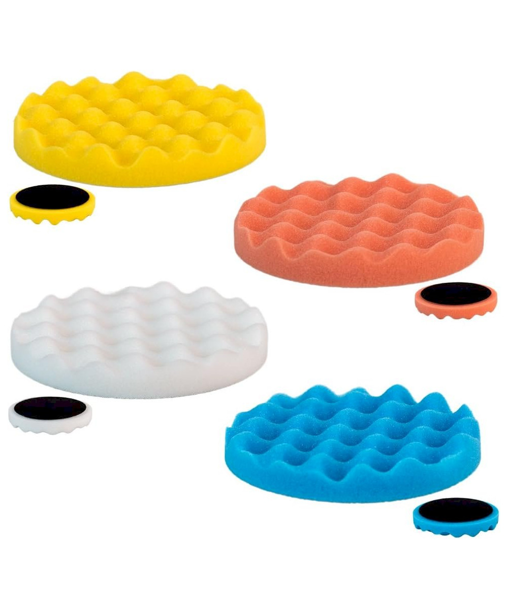 - 4x Polierschwamm Waffelo, 150mm/25mm gewaffelt, gelb, orange, weiß, blau