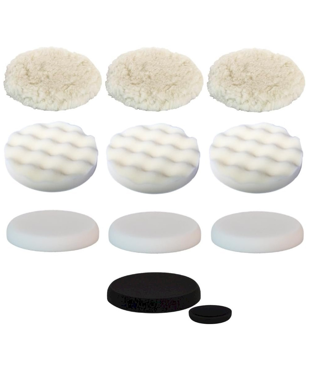 3x 150mm Polierschwamm, weiß, gewaffelt (soft-mittel) - 3x Polierfell 150mm
