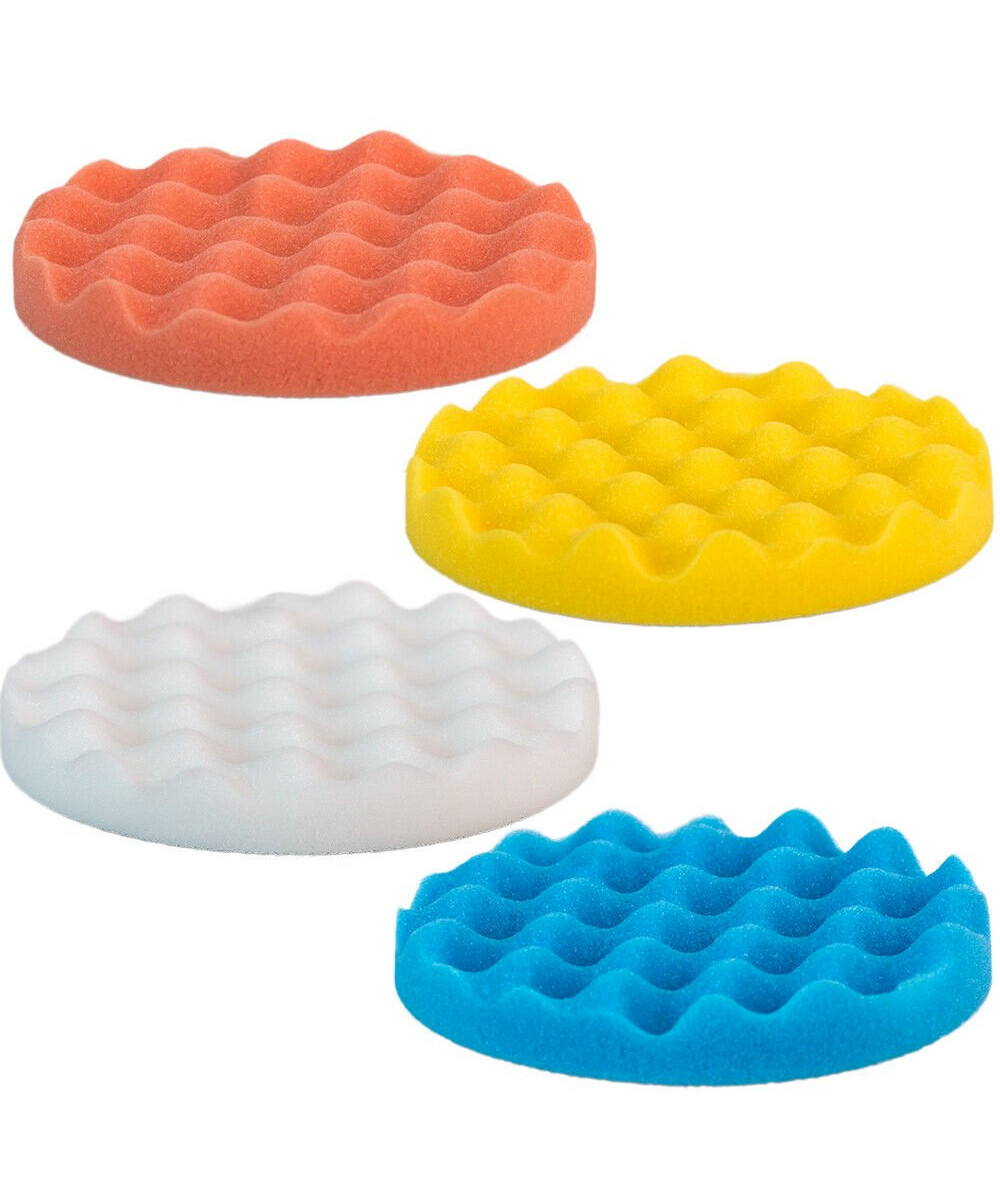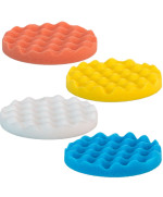 4x Polierschwamm Waffelo, 150mm/25mm gewaffelt, gelb, orange, weiß, blau