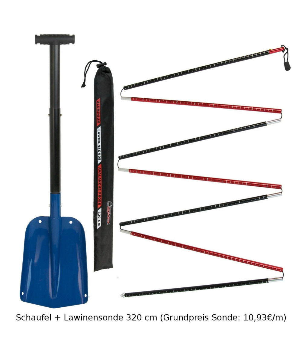 ALPIDEX 16056 Blue - 320 cm Lawinensonde und Alu Lawinenschaufel Schneeschaufel mit ausziehbarem Stiel