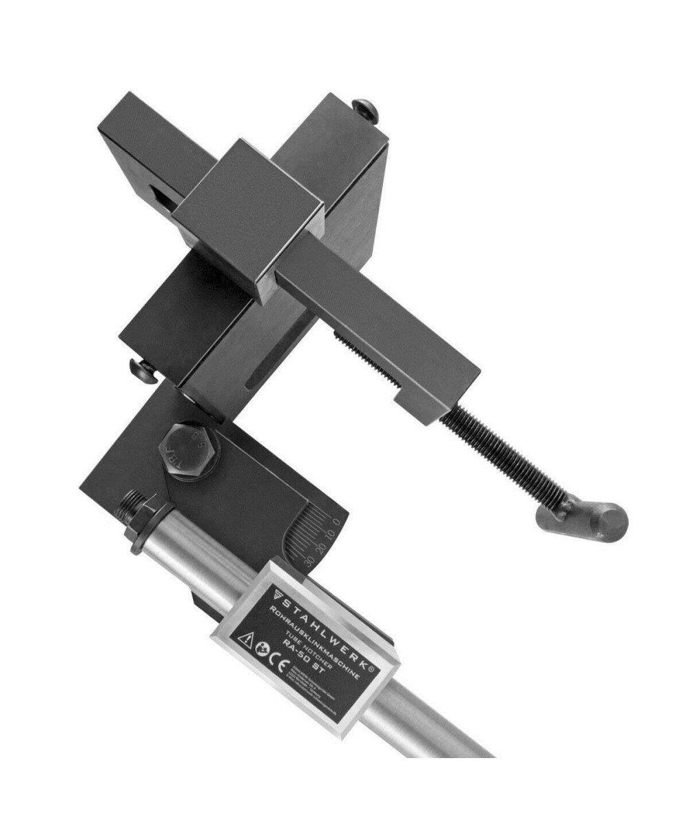 Die STAHLWERK RA-50 ST ist eine Präzisionsmaschine, um Ausklinkungen an Metallrohren herzustellen. In der robusten Spannvorrichtung des Rohrausklinkers lassen sich Metallrohre bis zu einem Durchmesser von 80 mm (3“) über einen Spannhebel mit kraftvollem Spindelgewinde fixieren. Der Spannbereich des gefrästen und gehärteten Spannprismas deckt Rohrweiten von DN 20 (3/4“) bis DN 80 (3“) ab.
