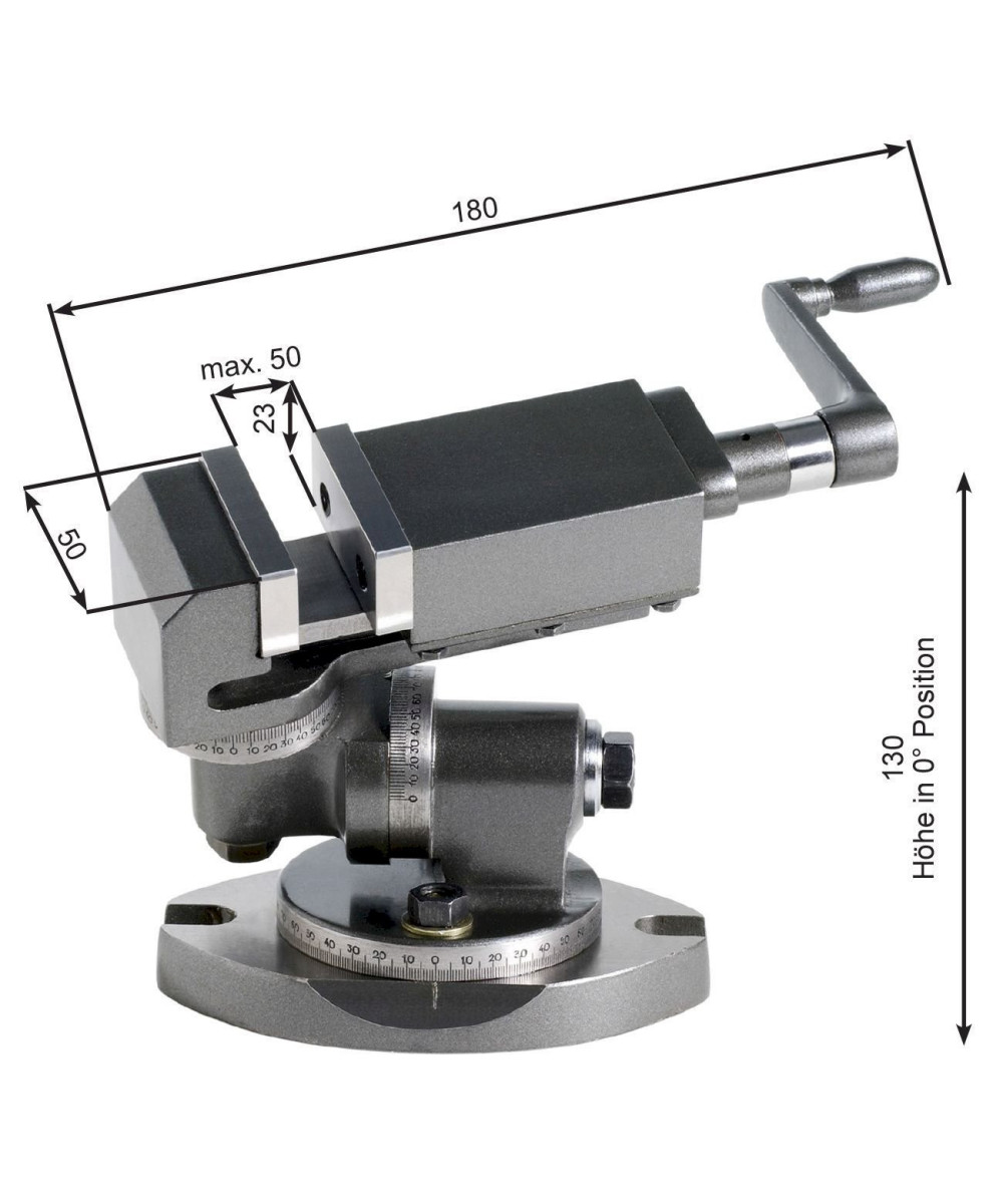 - der Schraubstock kann beliebig geneigt und geschwenkt werden, so dass jede Position zur Maschine erreicht werden kann