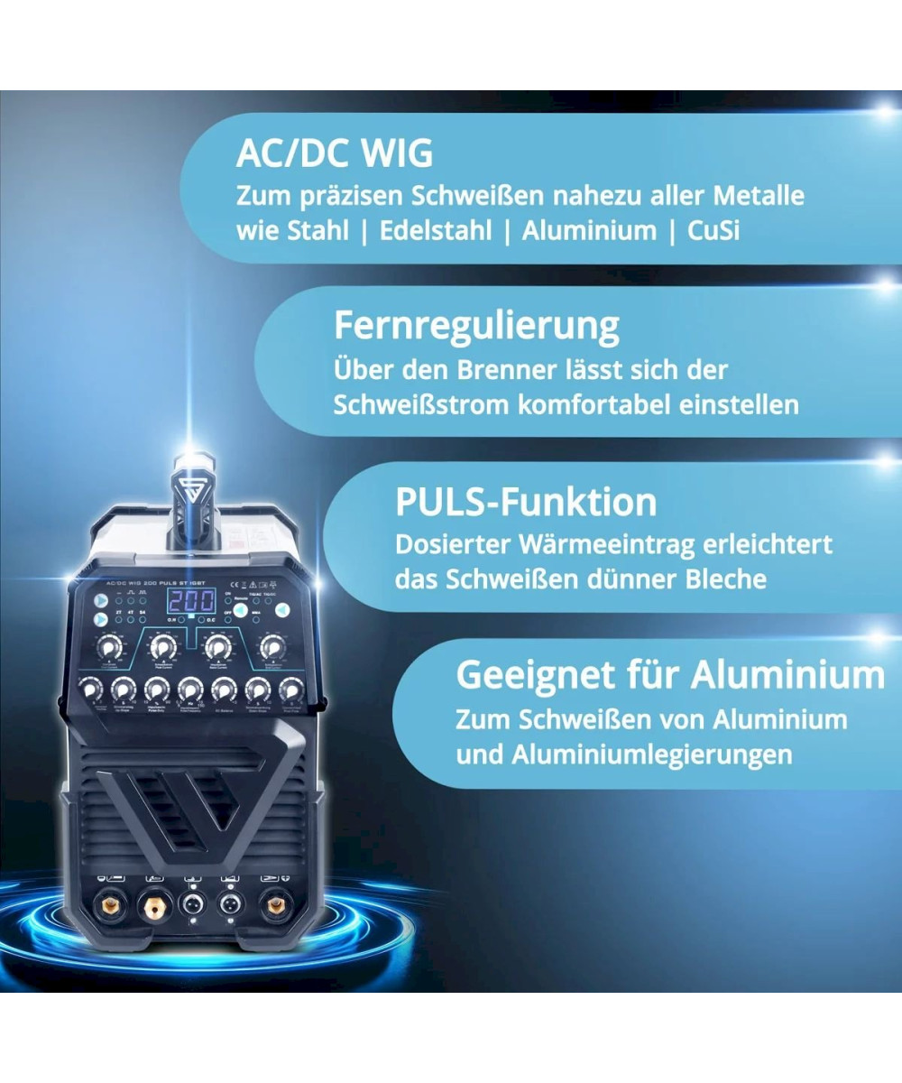 - 2 in 1 Kombigerät - WIG & MMA schweißen ist bis 200 A möglich.