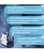 - Leichte & Kompakte Bauweise - nur 12,9 kg Gewicht und Maße von 455 x 220 x 370 mm. Innovative IGBT Transistoren sparen Platz und Gewicht im Vergleich zur alten MOSFET Technologie. Kein schweres Tragen mehr!