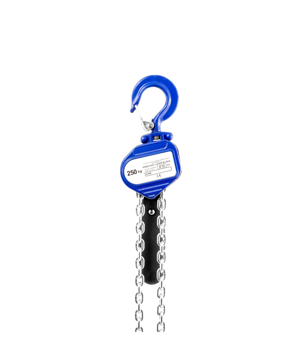 Die 1,5 m lange verzinkte Stahlkette hat eine Stärke von 4 mm. Somit können Lasten bis zu 250 kg zuverlässig und sicher bewegt werden. - Freilauffunktion