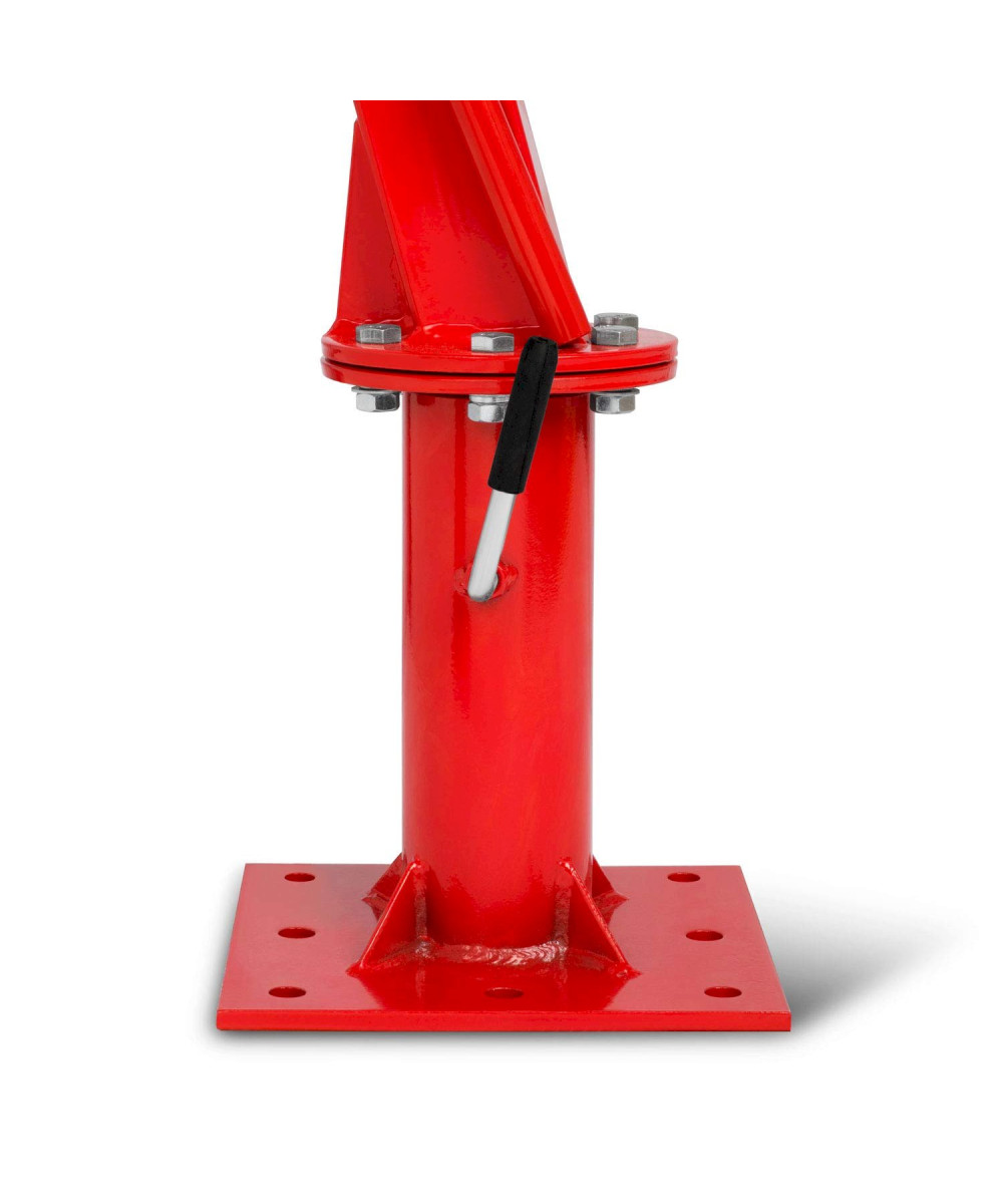 Der Kran lässt sich problemlos auf nahezu allen festen Untergründen befestigen. Montiert auf der Ladefläche Ihres Fahrzeugs oder Anhängers ist er mobil einsetzbar – überall dort wo Ihre Ladearbeiten anfallen. Je nach Einstellung des Auslegers beträgt die Hubleistung 110 kg (ausgefahren) oder max. 450 kg (eingefahren). Über die am Kran angebrachte Stahlkette mit Lasthaken lassen sich Lasten direkt vom Boden aufnehmen und bis zu einer Höhe von 1900 mm (Hakenhöhe) anheben und versetzten. Dabei unterstützen Sie die robuste Handwinde sowie der Drehturm, dass auch bei Volllast einen 360° Schwenkbereich ermöglicht.