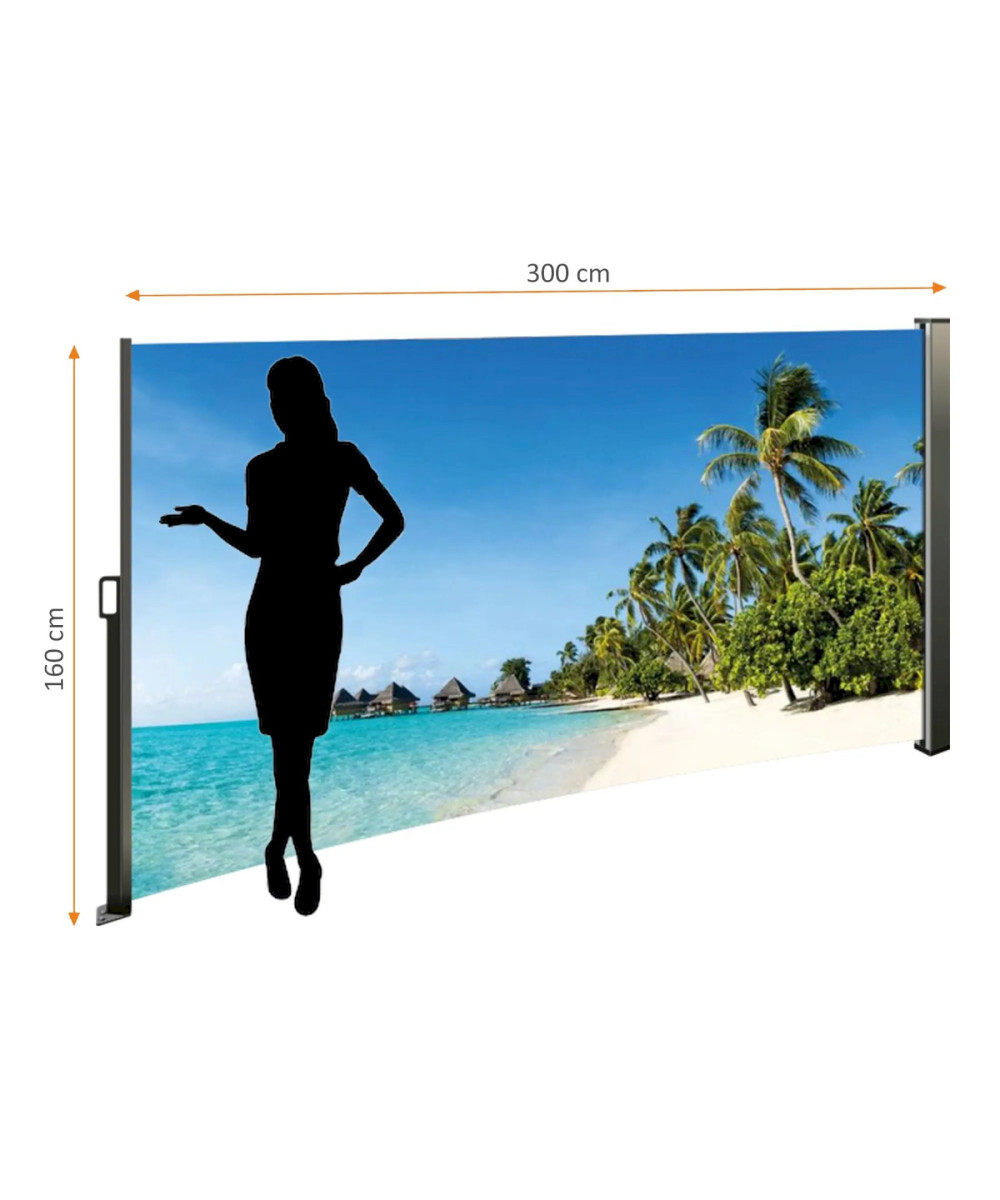 Westerholt Seitenmarkise mit Fotodruck SÜDSEE Rechts 160 x 300 cm Sichtschutz, Windschutz RECHTS (Auszug links)