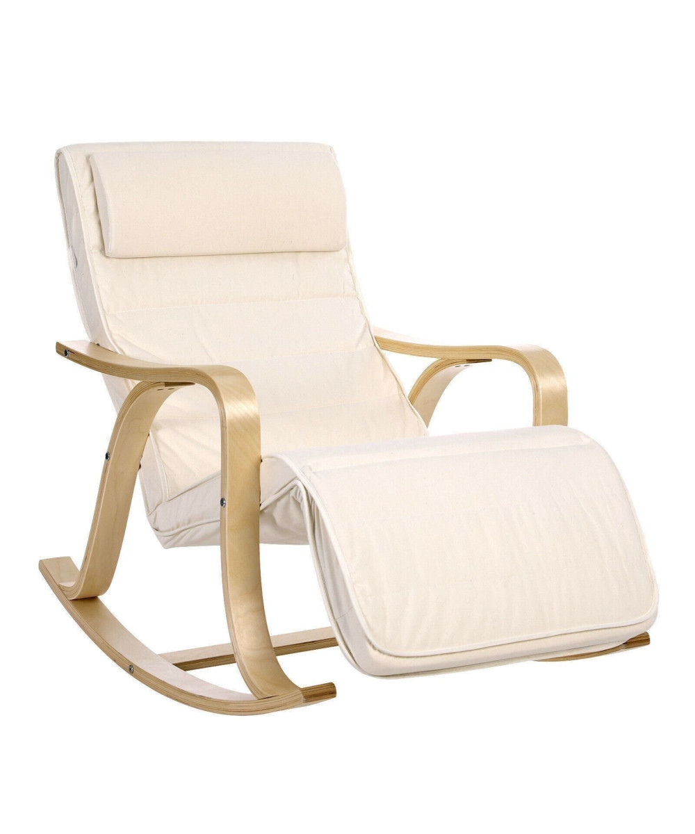 SONGMICS Schaukelstuhl Schwingsessel mit 5-Fach verstellbarer Fußstütze Relaxstuhl bis 150 kg Gestell aus Birkenholz Bezug aus