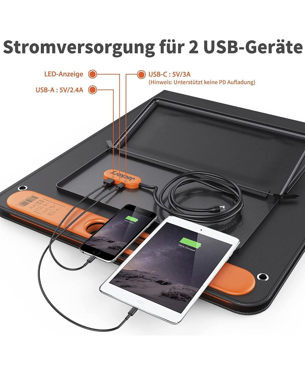 - Solar-Ladegerät mit zwei USB-Ausgängen: Ausgestattet mit 1* USB-C-Ausgang und 1* USB-A-Ausgang, um mehrere Geräte direkt aufzuladen, einschließlich Smartphones, Tablets, Digitalkameras etc.