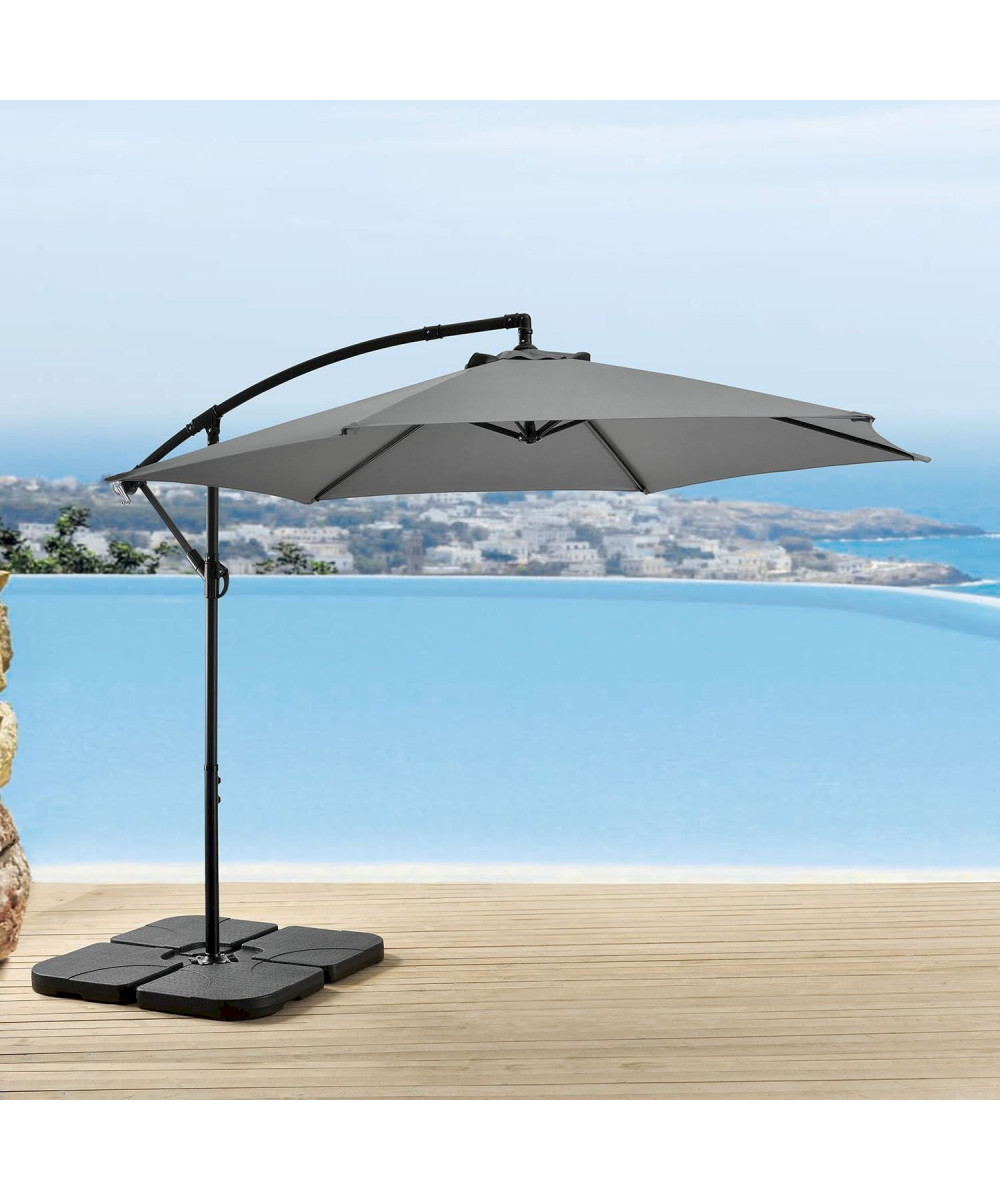 Ohne Füllstoff sind die Gewichte sehr leicht. So lassen sich die vier Schirmgewichte bei Bedarf mit den integrierten Griffmulden bequem tragen und verstauen.