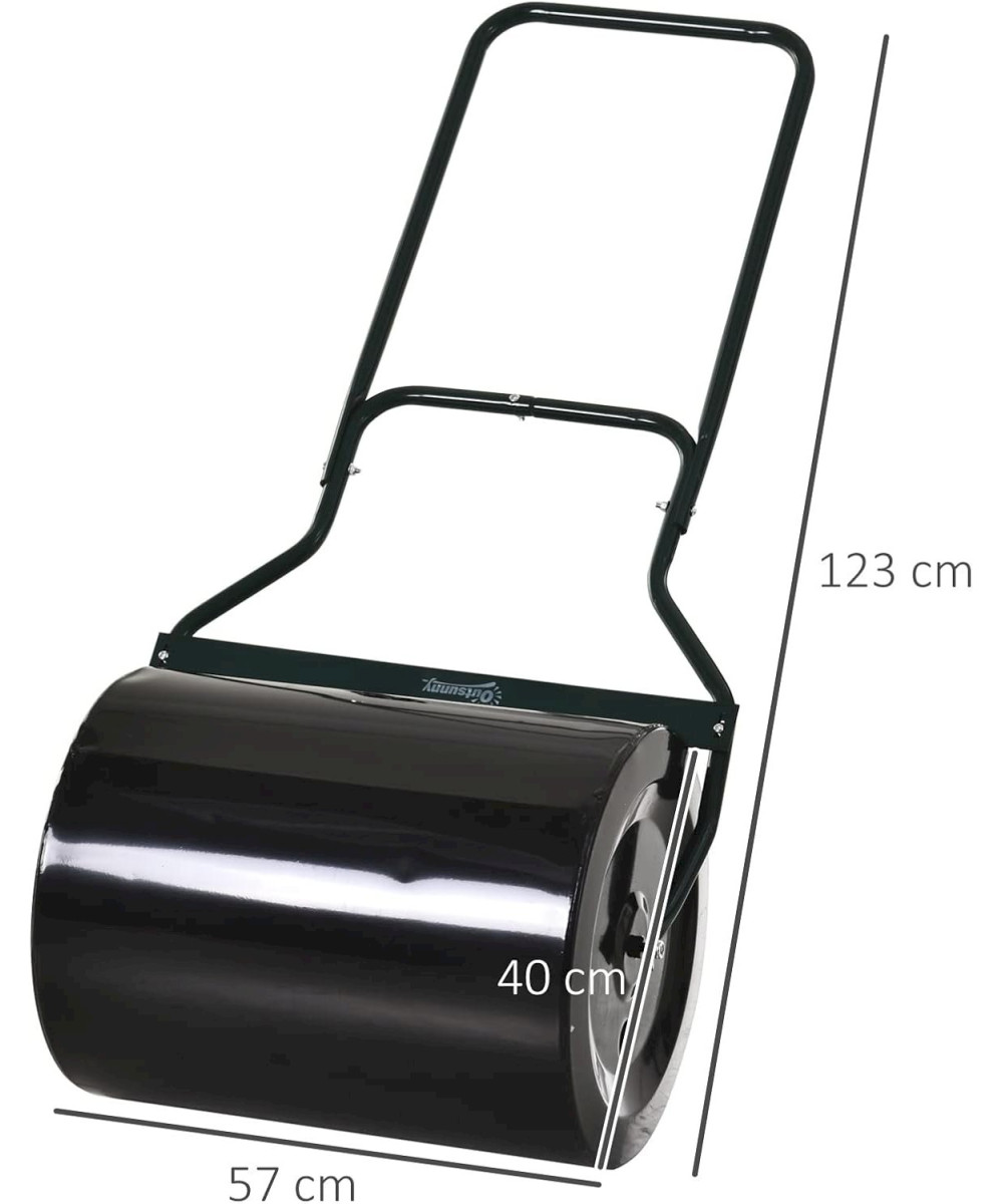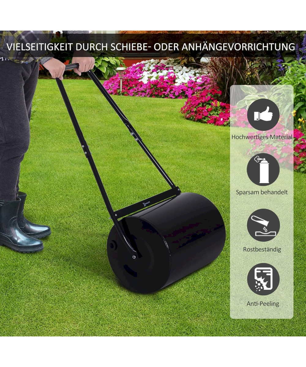 Outsunny Rasenwalze Schwarz mit U-Griff, Gartenwalze, Gartenrolle, 40 cm Durchmesser