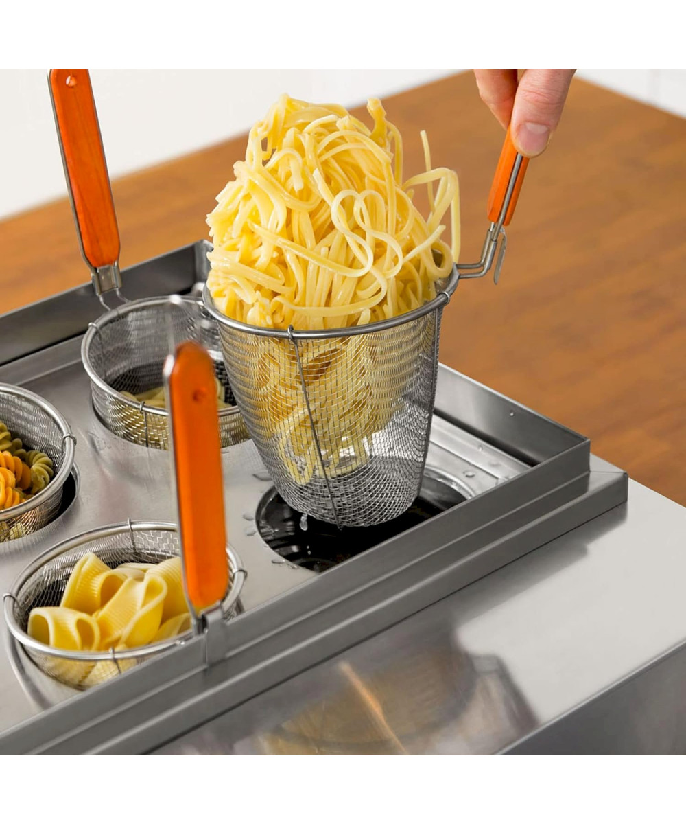 - Getrennte Kochbecken mit je zwei Nudel-Körben