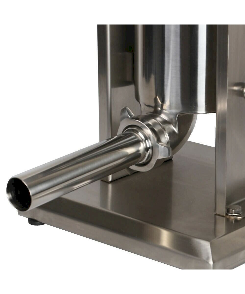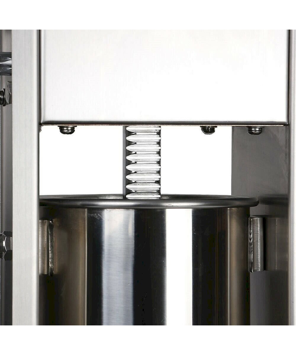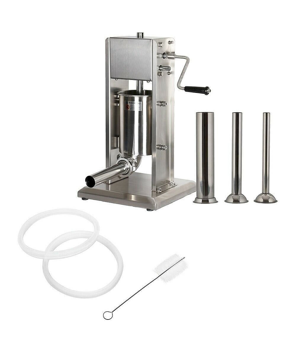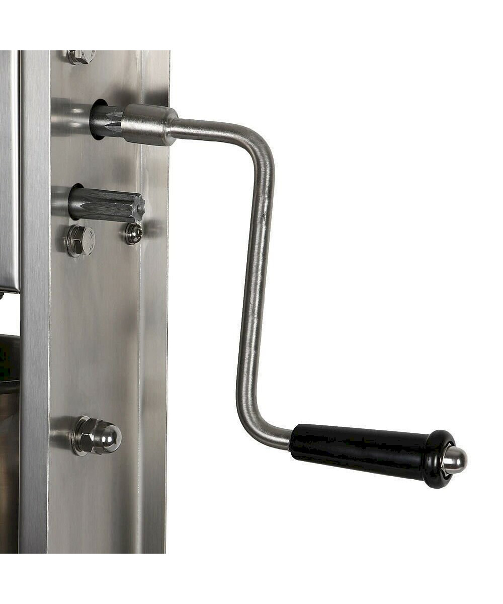 Selber Wurst herstellen, genießen und verschenken - das ist mit dieser hochwertigen Wurstmaschine möglich. Möchten Sie Ihre Küche in ein kulinarisches Experimentierfeld verwandeln, treffen Sie mit diesem Gerät die richtige Wahl. Die vertikale Wurstmaschine begeistert durch ein stromlinienförmiges Design. Auch in kleinen Küchen können Sie das platzsparende Modell problemlos einsetzen. Dank der guten Konstrukution gelingt es Ihnen, Fleisch mit nur wenig Anstrengung in den Zylinder zu füllen. Der Stand und der Rahmen der Wurstpresse sind aus rostfreiem, wasserdichtem Edelstahl gefertigt - jahrelanger Gebrauch ist damit garantiert. Abgerundet wird das Design durch die ergonomische Handkurbel, die stabil verarbeitet ist und sich leicht bedienen lässt.