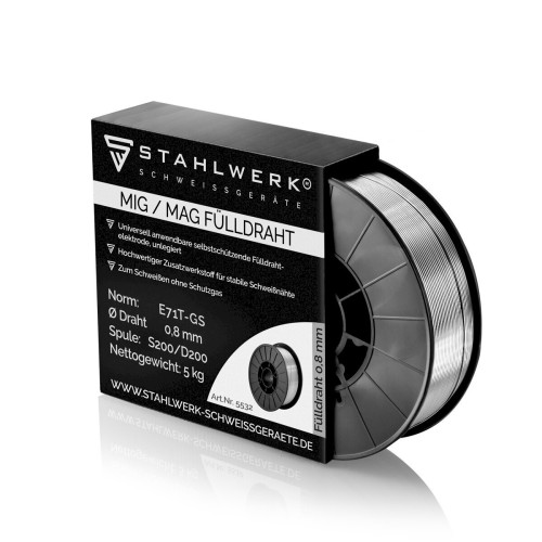 1 × STAHLWERK MIG MAG Premium Fülldraht E71T-GS Ø 0,8 mm / 5 kg S200/D200 Rolle