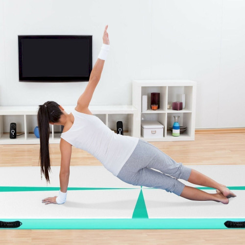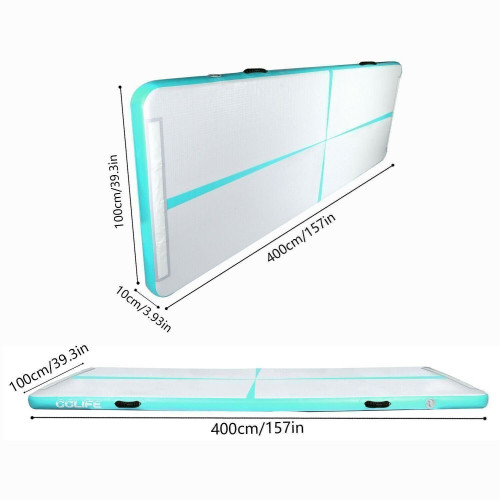 CCLIFE Air Track Turnmatte Aufblasbar Gymnastikmatte Airtrack Tumbling Matte Training 400x100x10cm Grun