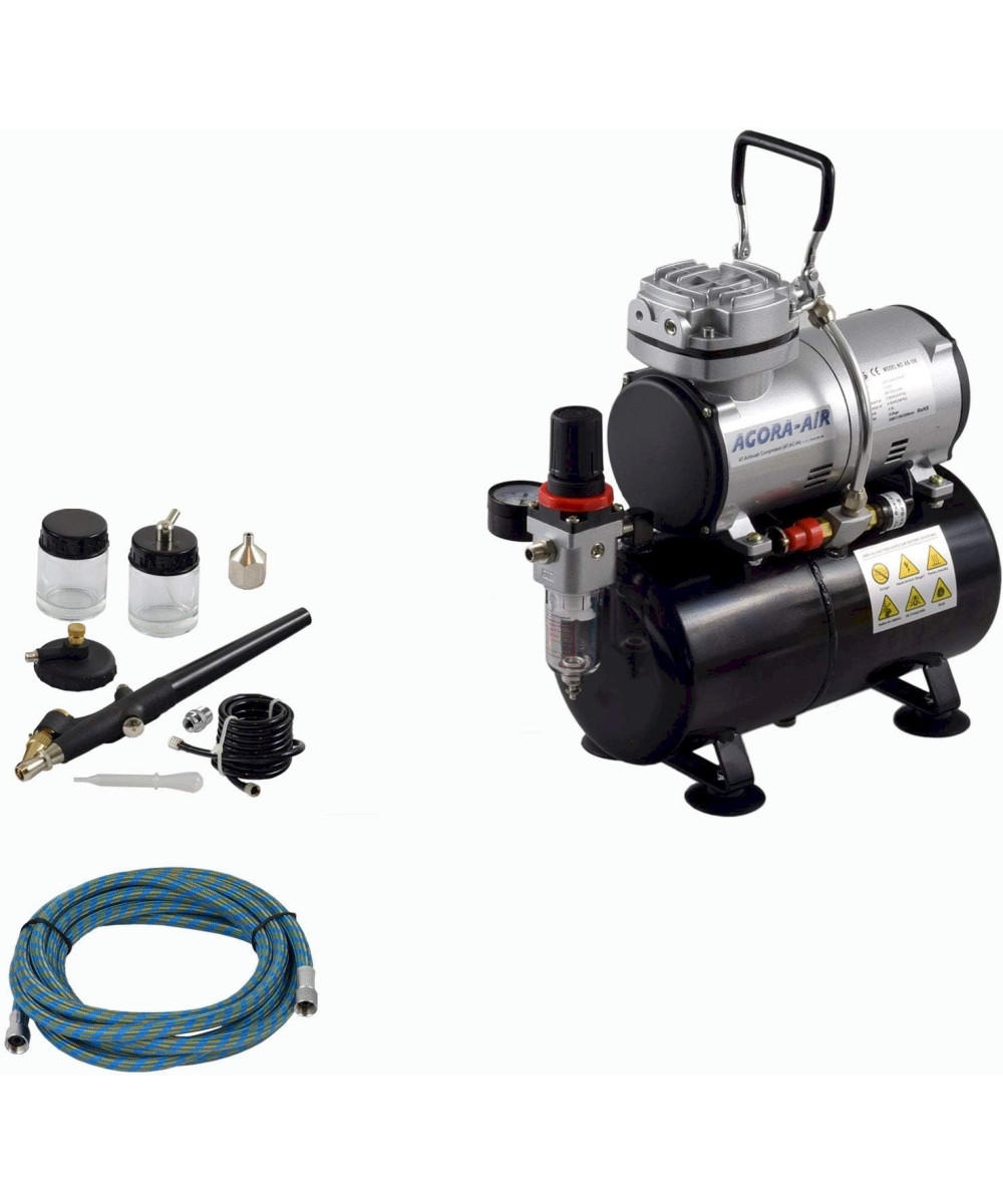 Agora-Tec Druckluft Reinigungs und Airbrush Set mit leisen Mini Kompressor