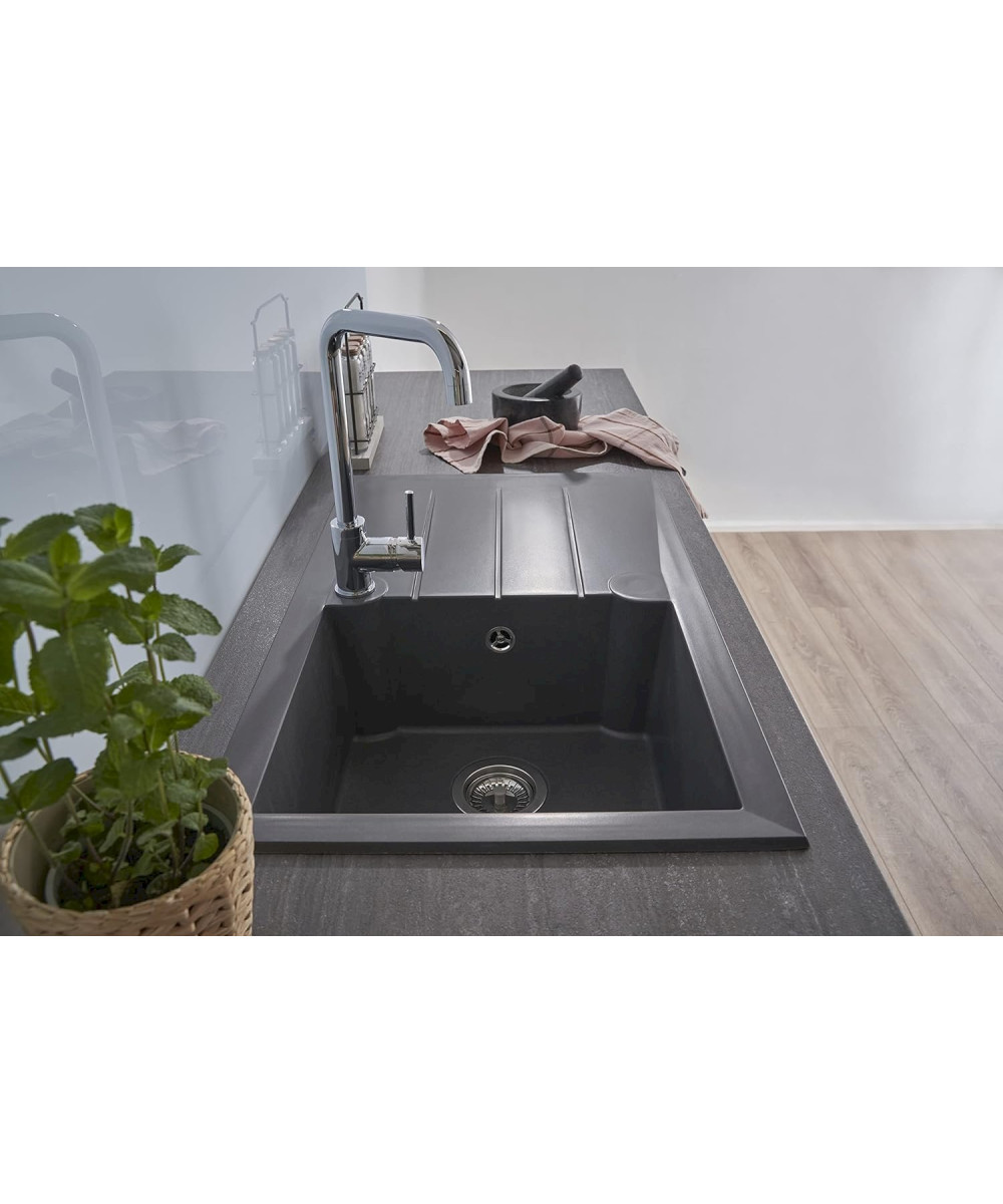 DESIGN: Die Granit Küchenspüle in eckig, modernem Stil fügt sich in unterschiedlichste Küchenzeilen perfekt ein. Das verwendete Granit sorgt für ein besonders hochwertiges Erscheinungsbild