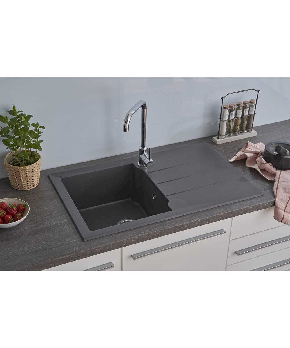HOCHWERTIG: Die Granitspüle ist durch die große Abtropffläche und die 1,5 Spülbecken eine perfekte Ergänzung für jede Küche. Mit einer Abmessung von 81 x 50 fügt es sich optimal ein