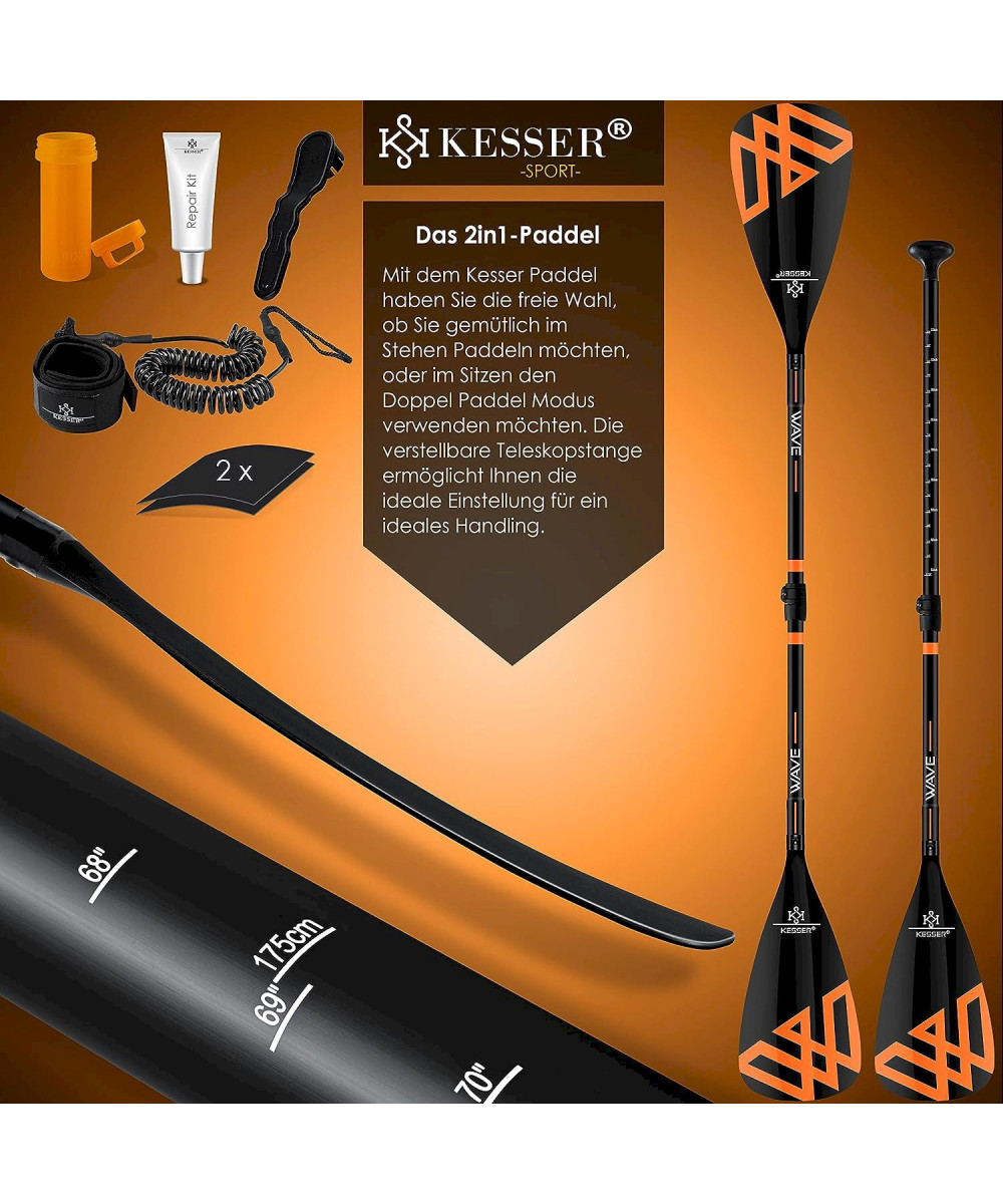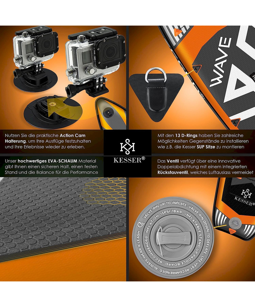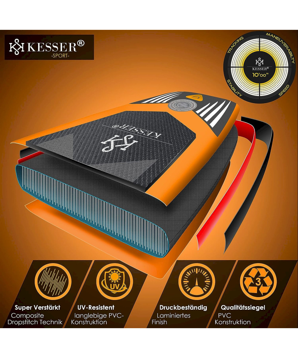 KESSER SUP Board mit Sitz Stand Up Paddle aufblasbar Set GTX Orange 320cm