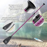 Ein großer Vorteil des 3-teiligen Paddelsets ist das klemmbare Stecksystem. Durch die angegebene Größenskala von 165 - 210 cm auf dem Paddelschaft, wird Ihnen ein einfaches und schnelles Verstellen auf Ihre perfekte Wunschlänge ermöglicht, sodass Bewegungen flüssig und routiniert ausgeführt werden können. Das hochwertige Material aus Aluminium sorgt für ein leichtes Gewicht und rundet somit ein perfektes Stehpaddel ab.