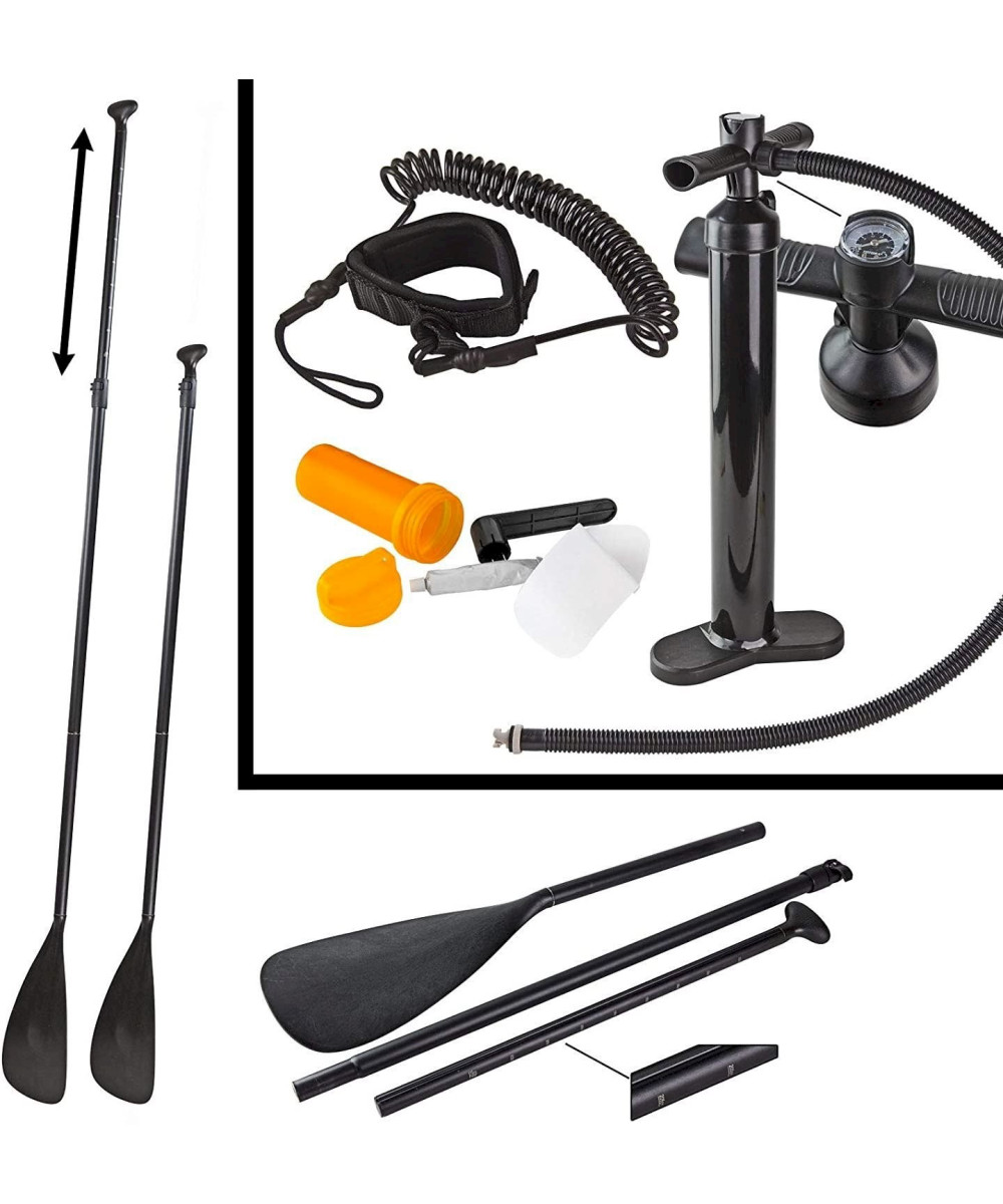 - Inkl. komplettem Zubehör (Pumpe mit Manometer, Rucksack, Fußleine, verstellbares Aluminium-Paddel und Reparaturset) - Sie können gleich loslegen