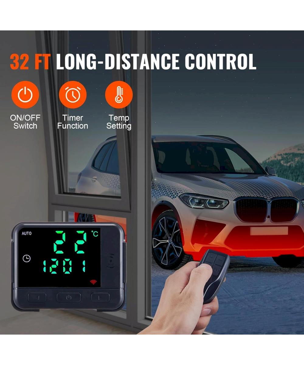 Intelligente Doppelsteuerung: Übernehmen Sie die Kontrolle über Ihr Heizerlebnis mit unserer 32-Fuß-Fernbedienung (10 m) und LCD. Heizen Sie Ihr Fahrzeug von außen vor, halten Sie den Innenraum warm, wärmen Sie den Motor vor und verhindern Sie, dass die Scheiben vereisen. Das große LCD-Display gibt Ihnen einen klaren Überblick über den Status Ihrer Heizung. Die Temperatur kann von 46 bis 96,8 °F (8 °C bis 36 °C) eingestellt werden, um Ihren spezifischen Bedürfnissen gerecht zu werden.