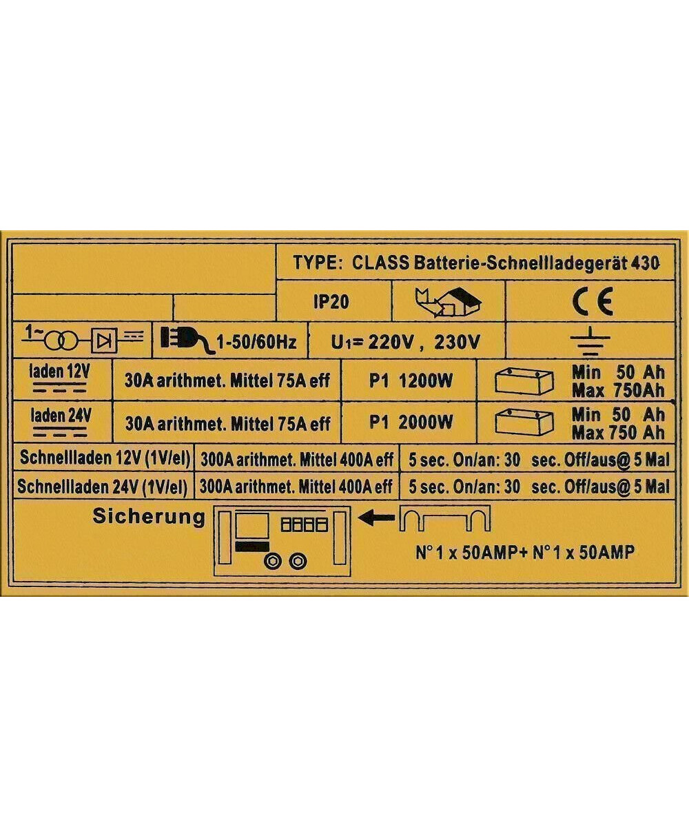Ladestrom/ Stromaufnahme SCHNELL: arithmetisch: 12/24Volt-300A / effektiv: 12/24Volt-400A, NORMAL: arithmetisch: 12/24Volt-30A / effektiv: 12/24Volt-75A