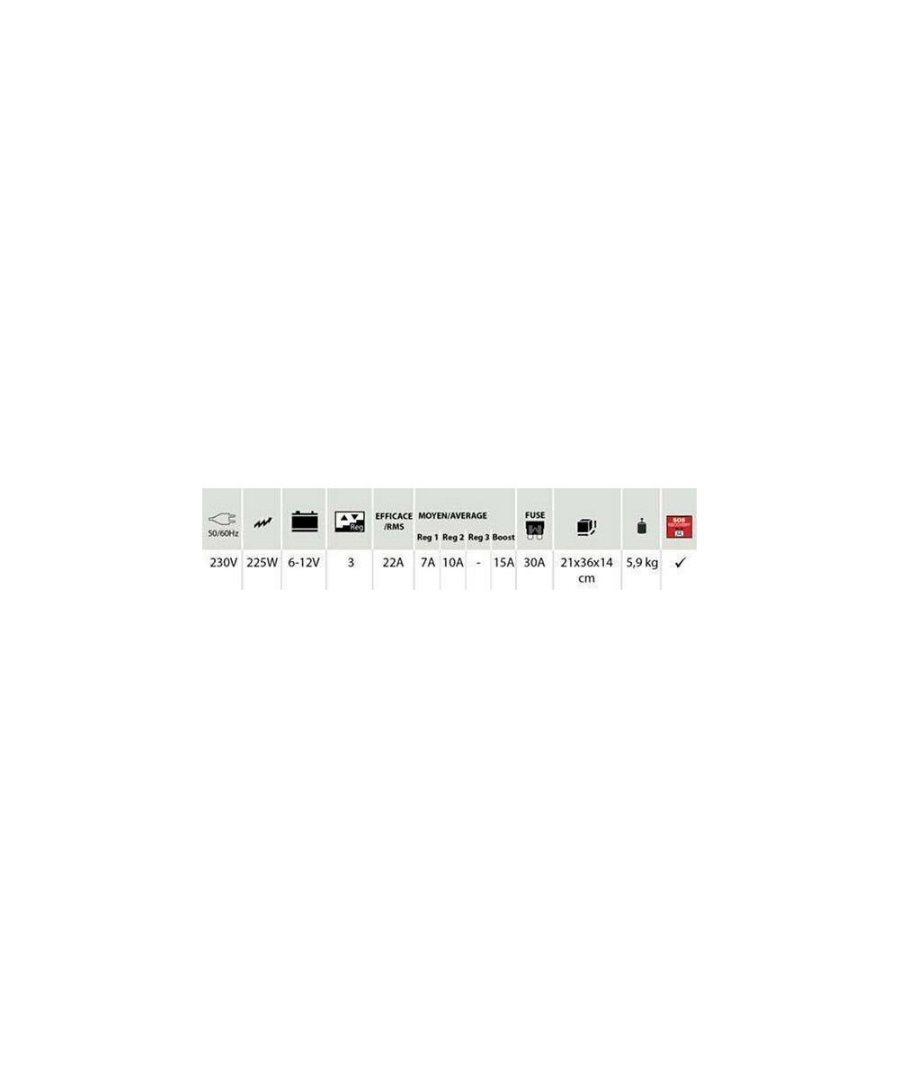 Technische Daten:Ladenennspannung: 6 / 12 V Geeignete Batteriearten: wartungsfreie, Gel- , Vlies-, Blei-Säure- und Start-Stop-Starterbatterien Batteriekapazität: 35 - 225 Ah Ladestrom effektiv: 22 A Ladestrom - EN 60335: 7 / 10 / 15 A (je nach Ladegeschwindigkeitsstufe) Ladestufen: 3 Maximale Leistung: 225 W Kennlinie: IWUoU mit Regenerierungsprogramm (SOS-Recovery-Funktion ab 0,5 V) Netzanschluss: 230 V - 50/60 Hz Absicherung: 30 A Schutzklasse: IP 21 Abmessungen: 20 x 13 x 31 cm (ohne Verpackung) 21 x 14 x 36 cm (mit Verpackung) Gewicht: 5,29 kg (ohne Verpackung) 5,68 kg (mit Verpackung)Lieferumfang:BATIUM 15.12 Ladekabel mit vollisolierten Klemmen