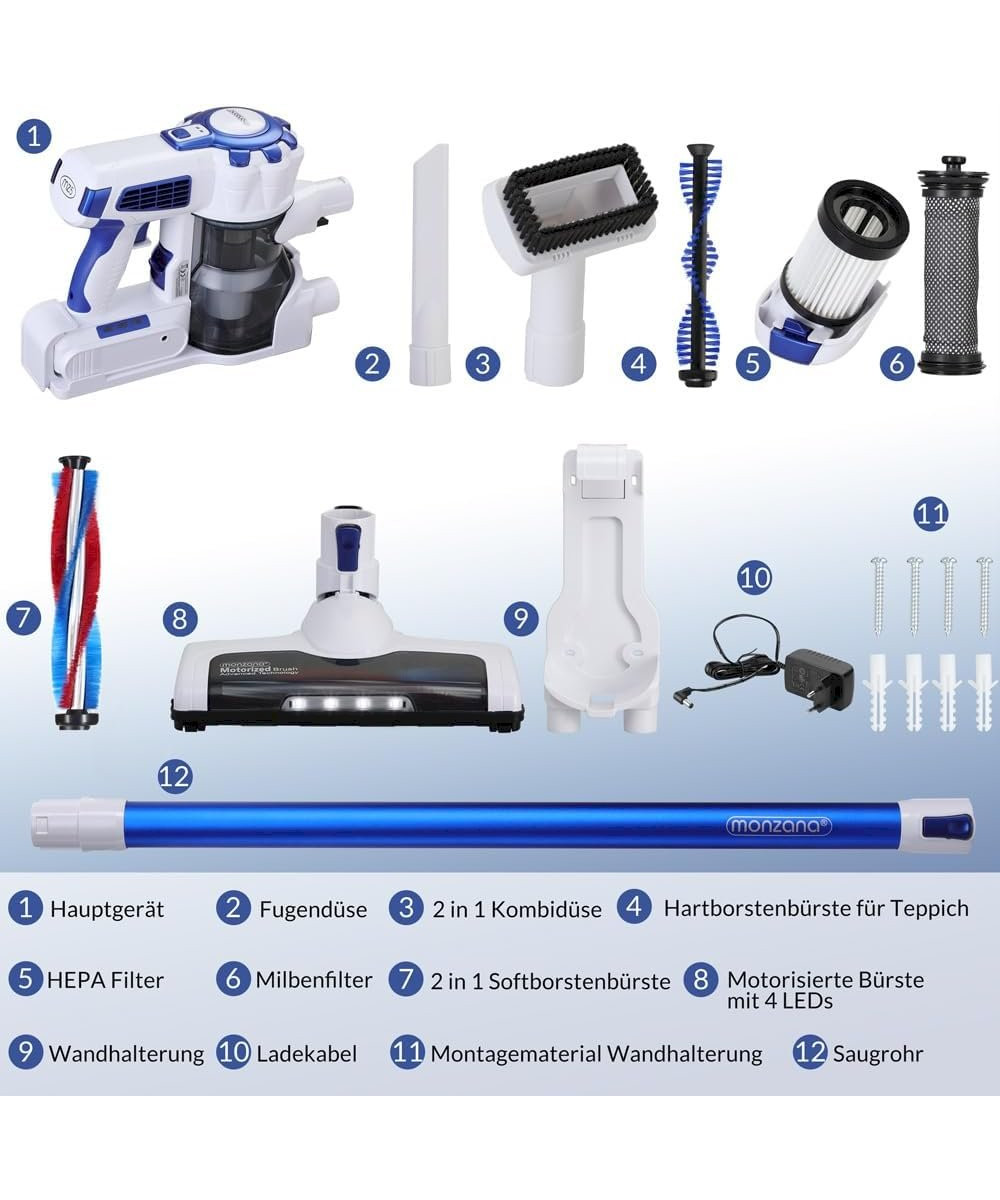 Monzana Akku Staubsauger MZ5 Weiß/Blau kabellos Bodensauger