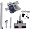 Dank des integrierten 22,2V Li-Ion Akkus und 3 Saugstufen kann man für bis zu ca. 40 Minuten problemlos ohne Kabel bequem reinigen - dabei ist der Staubsauger äußerst saugstark und gründlich. Den Boden behält man dabei auch in dunklen Ecken immer im Blick: der Akkusauger besitzt eine praktische LED-Beleuchtung, die einem zuverlässig den Weg weist.
