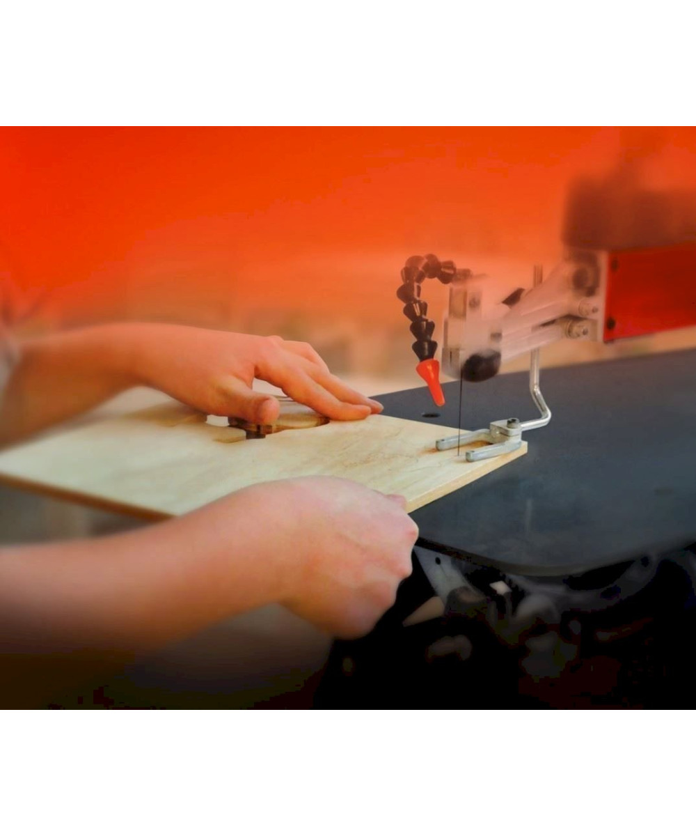 Pégas Dekupiersägen vereinen die bestmögliche Kontrolle des Werkstücks und hohe Genauigkeit bei einem maximalen Arbeitskomfort. Die Dekupiersägen sind mit einem schwenkbaren und vibrationshemmenden Maschinenarm ausgestattet. Auch bei schrägen Schnitten ist die massive Maschinentischplatte immer in waagrechter Position und ermöglicht somit besonders komfortables arbeiten. Die 16 Inch Ausführung ist mit einer 305 x 470 mm Maschinentischplatte ausgestattet und bietet einen Längsdurchgang von 406 mm.
