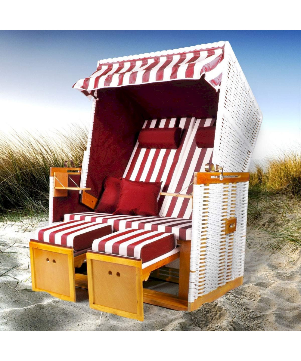 Der schöne 2-Sitzer Strandkorb "Norderney" bringt Strandfeeling zu Ihnen nach Hause! Frisches rot-weißes Design, toller Komfort und eine robuste Bauweise zeichnen den Strandkorb aus.
