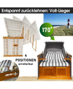 Strandkorb NORDERNEY DELUXE 120cm breit für 2 Personen grau/weiss gestreift