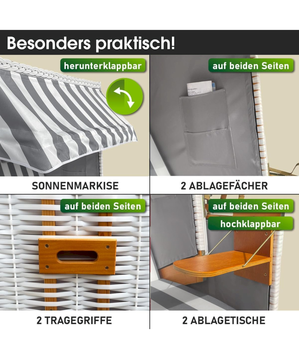 Praktische Extras für noch mehr Bequemlichkeit im 2-SitzerStrandkorb: