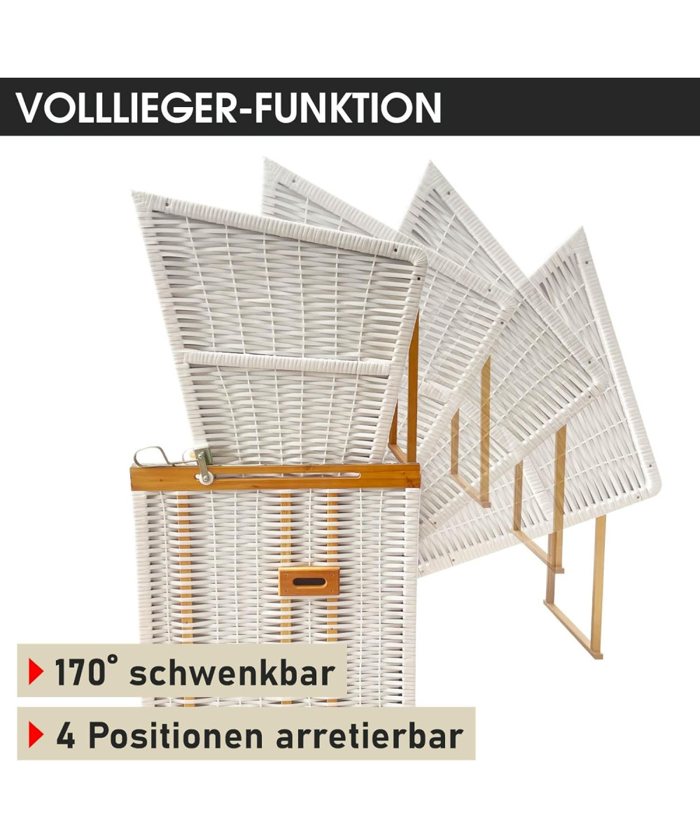 2-Sitzer Strandkorb mit besonders dicker Polsterung, Volllieger Strandkorb für Garten, Terrasse und Balkon, Ausziehbare und höhenverstellbare Fußbänke