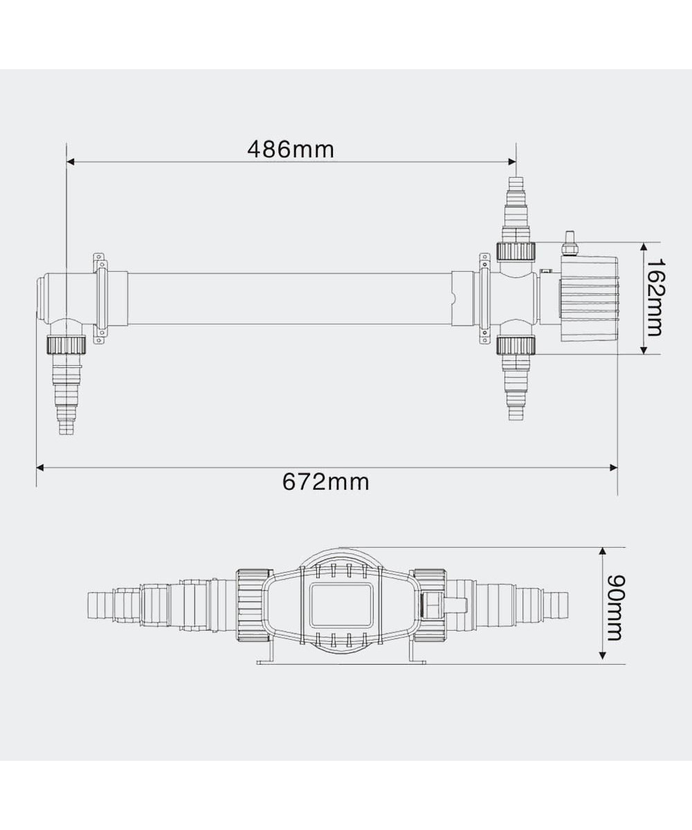 SunSun hat im Gehäuse der CUV-100 Serie die lineare Wasserführung gewählt. Der Wasserstrom wird gerade ohne Drehung an der UVC-Lampe vorbeigeführt.