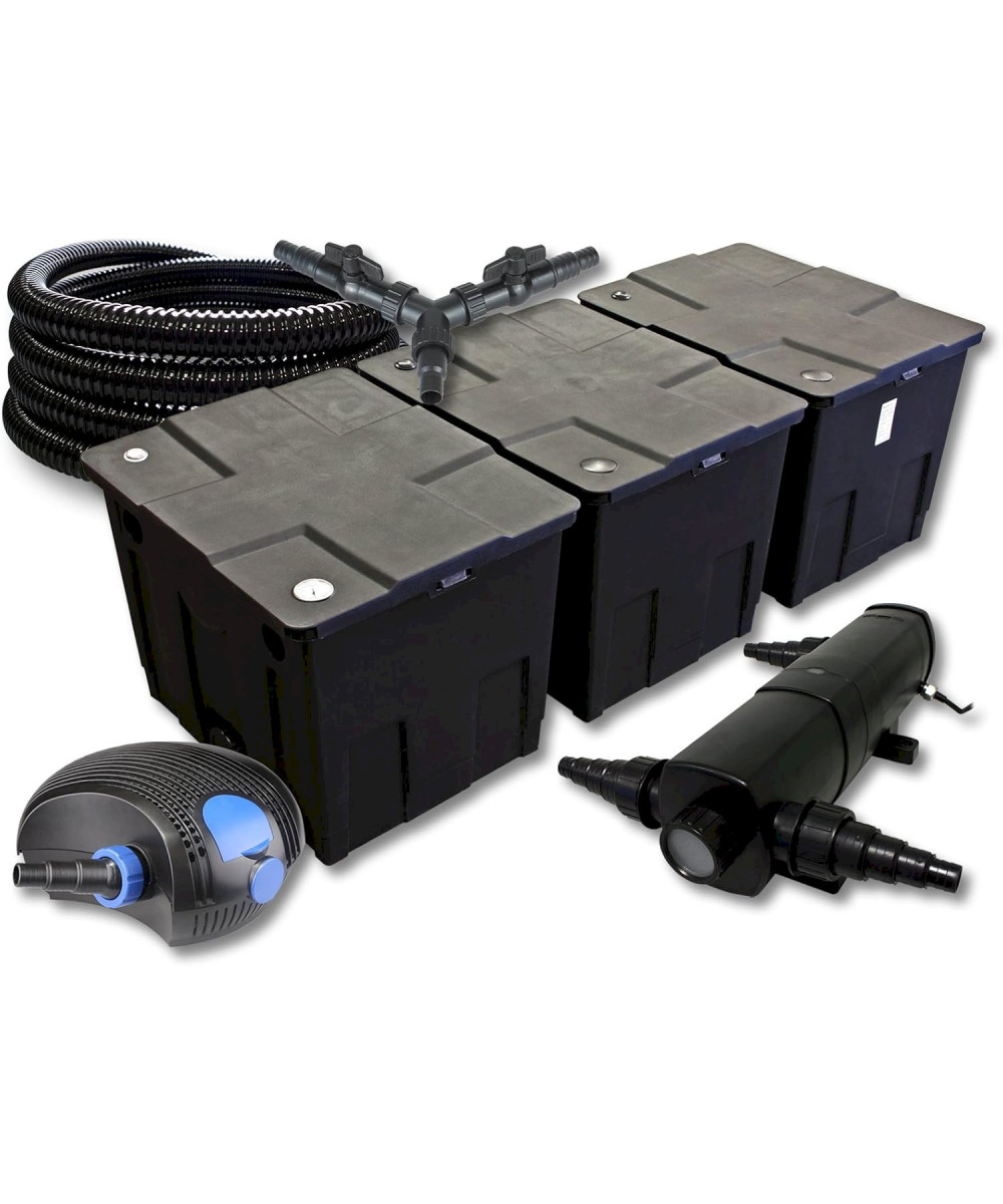 Teichfilter 90000L + Teichpumpe 12000l/h + UVC Klärer 24W und 25m Teichschlauch