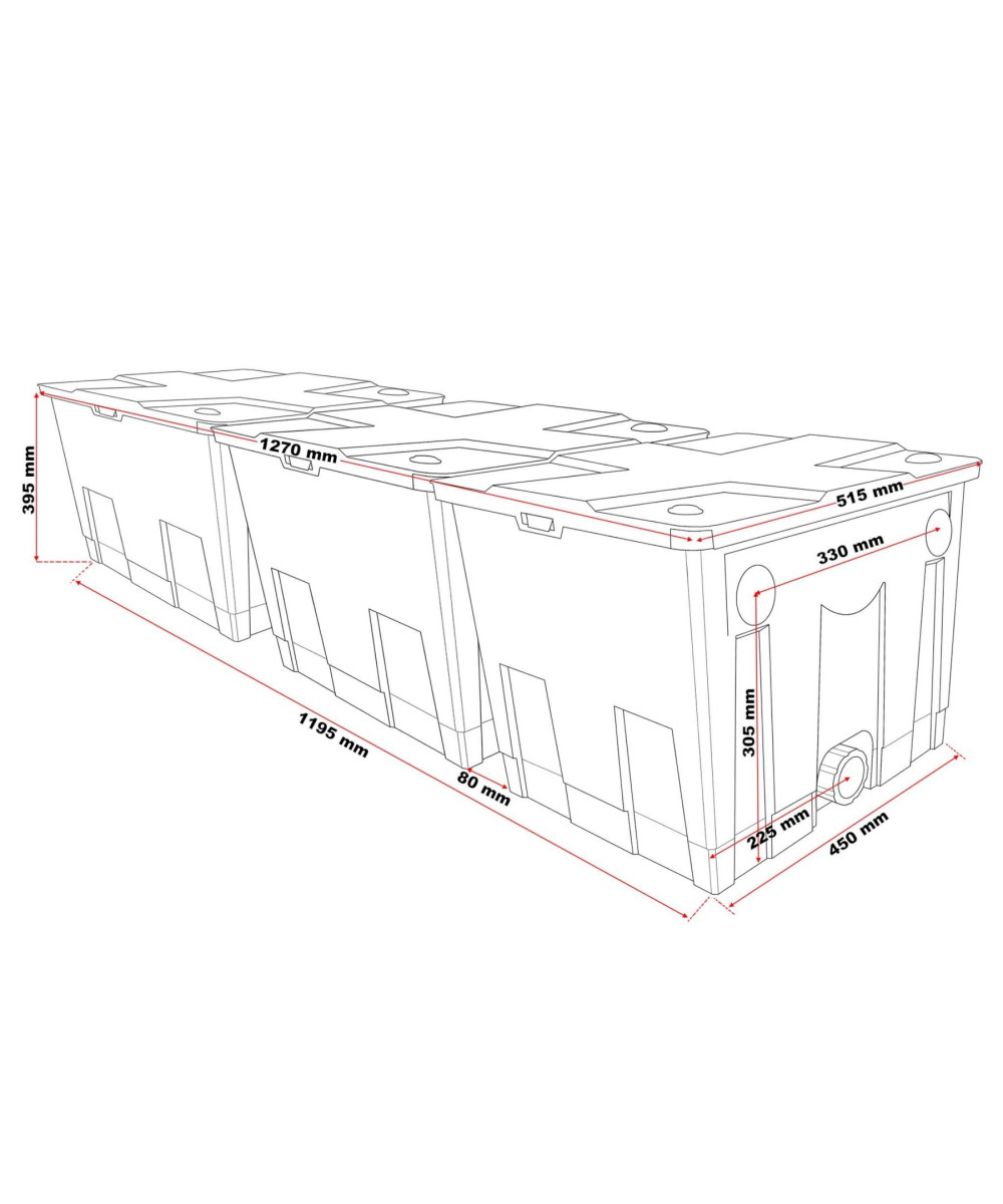 - Abmessungen: 1280 × 540 × 400 mm