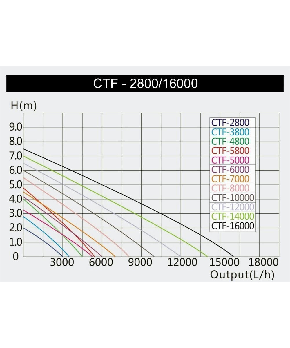 Vergleicht man die Leistungsaufnahme der CTF-Teichpumpen Serie mit anderen Teichpumpen, so wird man feststellen, dass der Trend zum Energiesparen richtig erkannt und gut umgesetzt wurde.