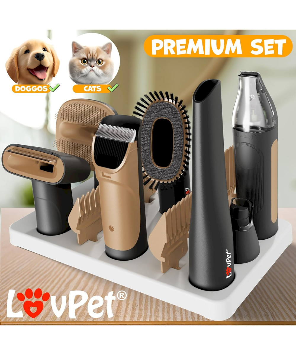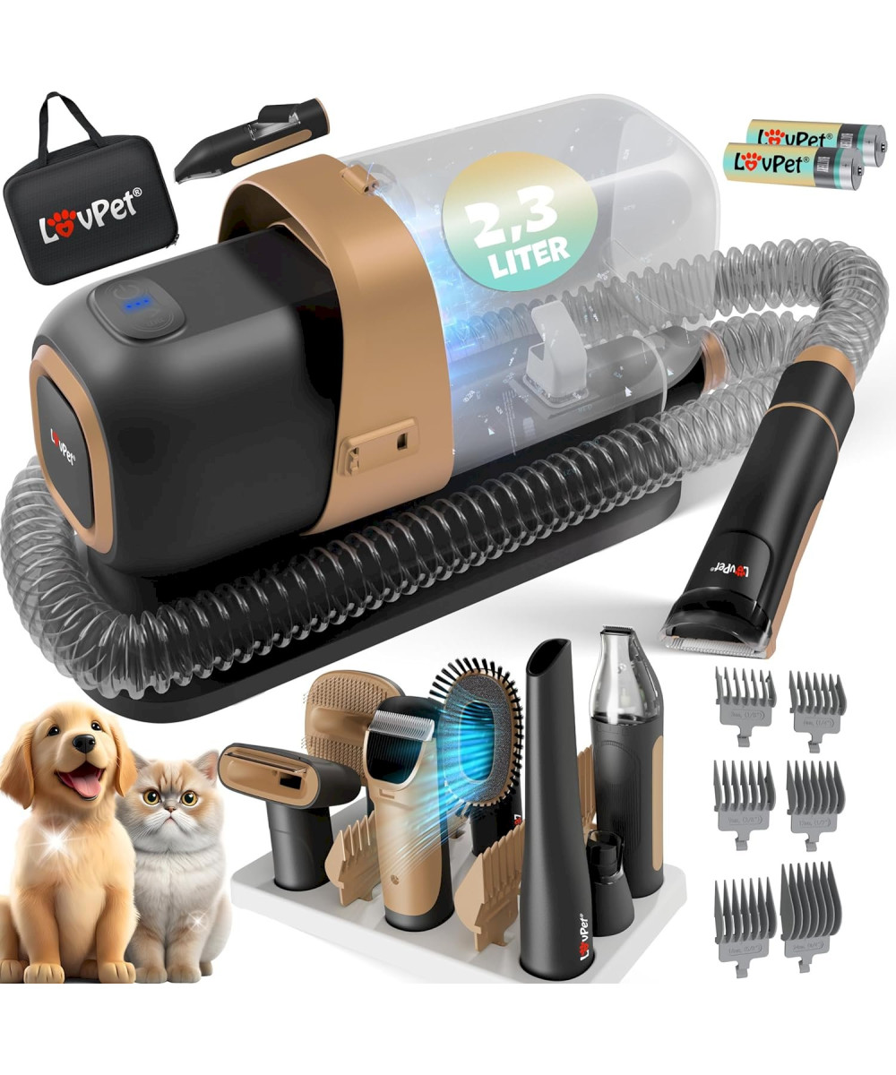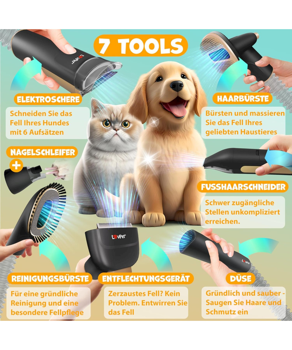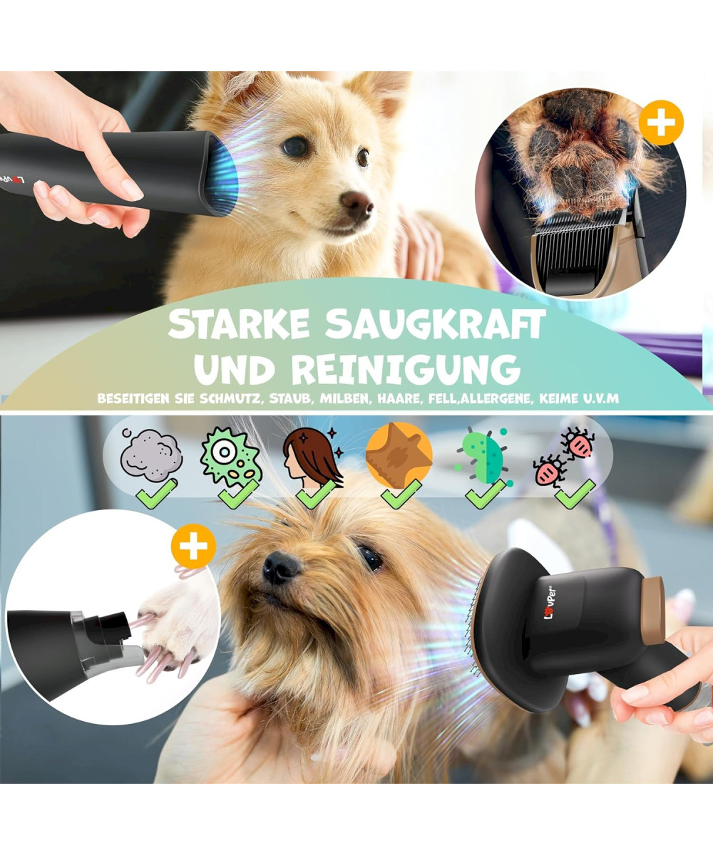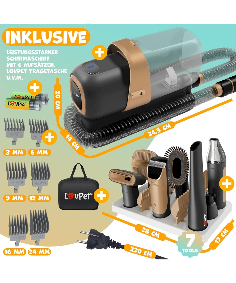 Lovpet Hundeschermaschine mit Staubsauger Schwarz / Champagne Haustierpflegeset mit Zubehör für Hund & Katze