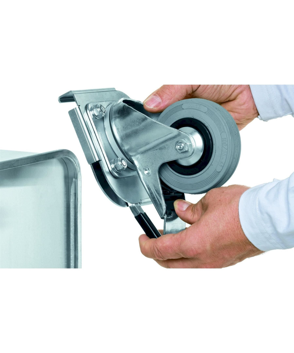 - Aus Vollgummi, Ø 100 mm, Lenkrollen ausgestattet mit Radfeststeller.