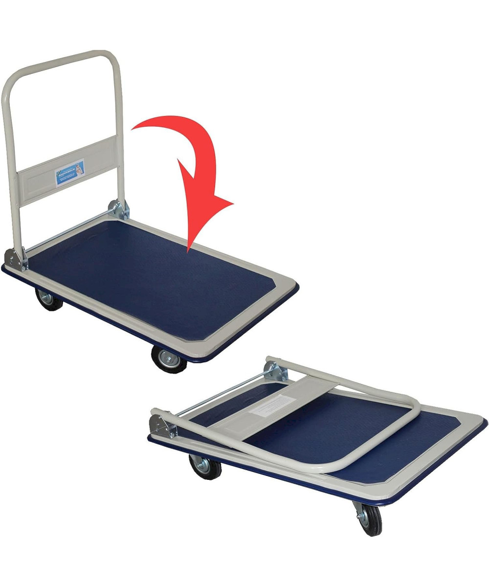 Durch die einklappbaren Handgriffe lässt sich der Plattformwagen leicht verstauen und auch leicht zu transportieren.