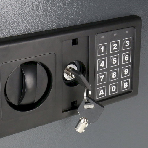 Der Schlüsseltresor mit Elektronikschloss von HMF überzeugt durch einen soliden Stahlkorpus und eine Doppelbolzenverriegelung.