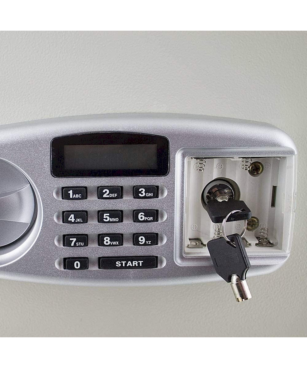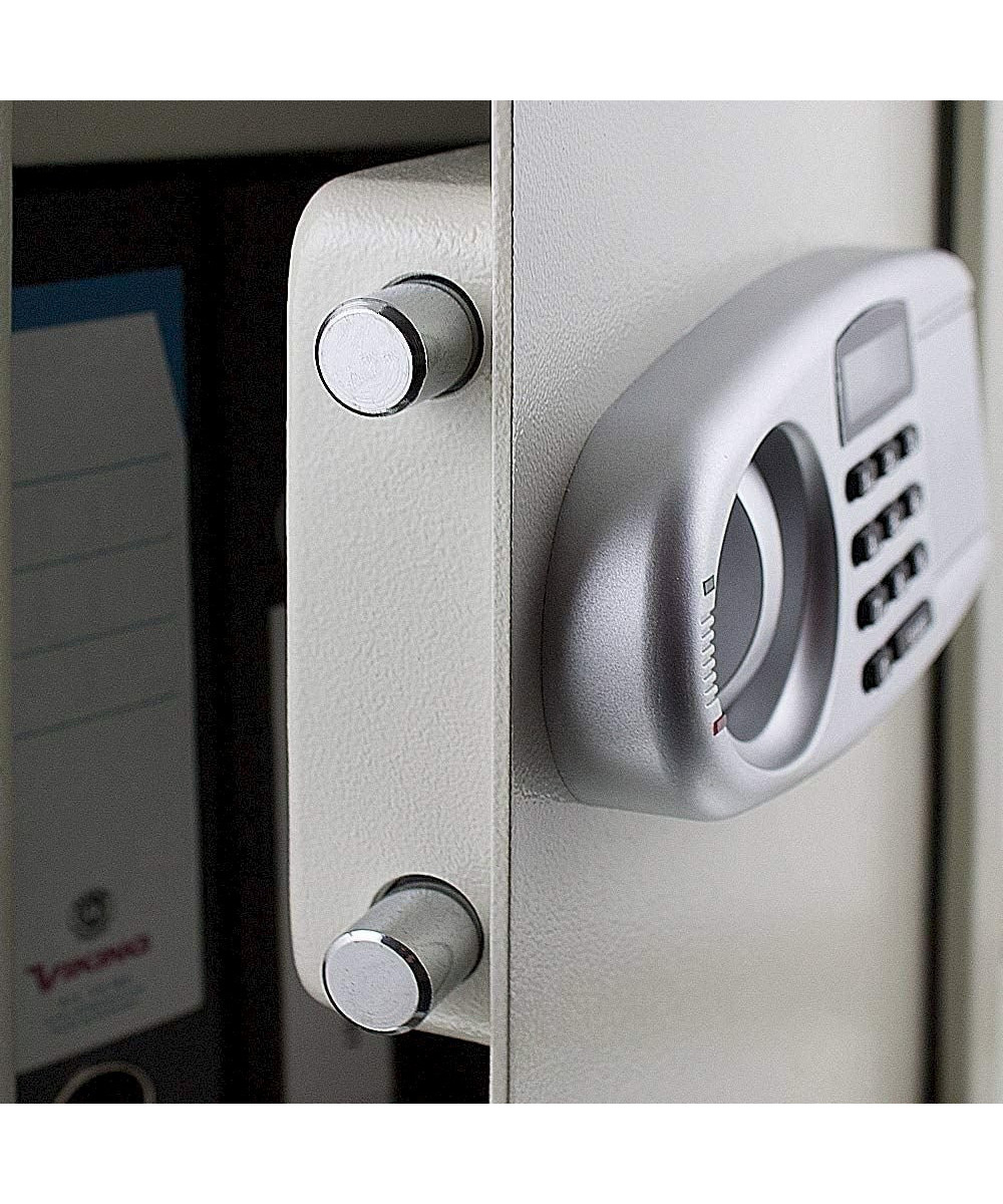 Die Öffnung des Tresors ist nur durch Eingabe ihrer persönlichen Geheimzahl möglich, oder mit dem beiliegenden Sicherheitsschlüssel. Die Tür mit Doppelbolzenverschluss sichert den Tresor vor unbefugter gewaltsamer Öffnung.