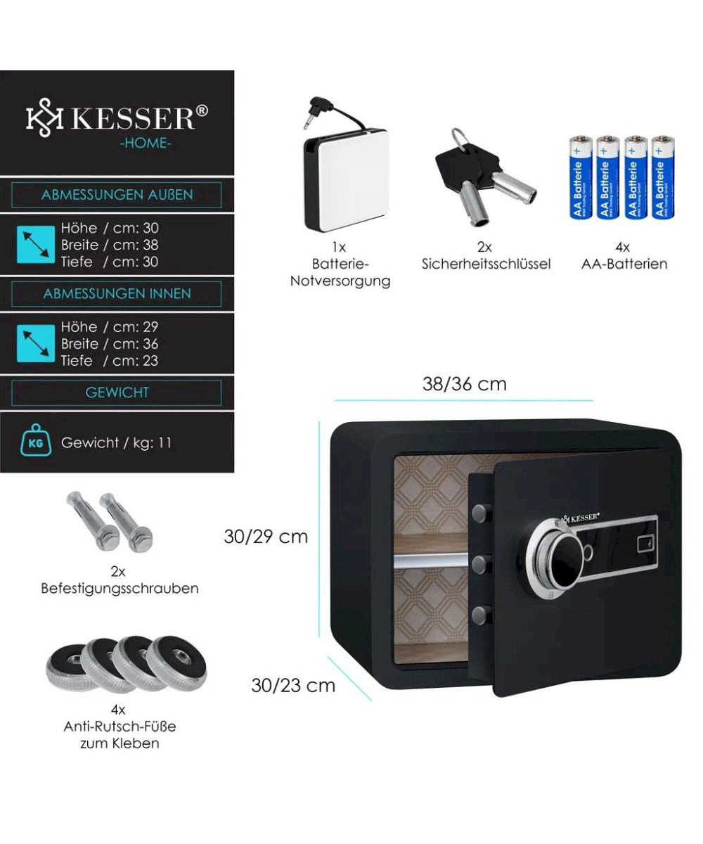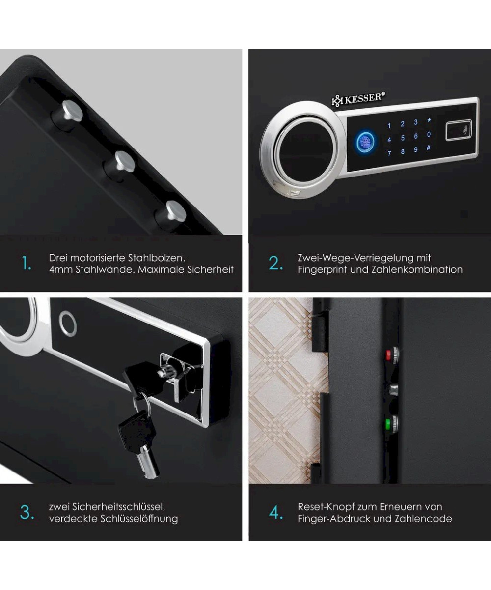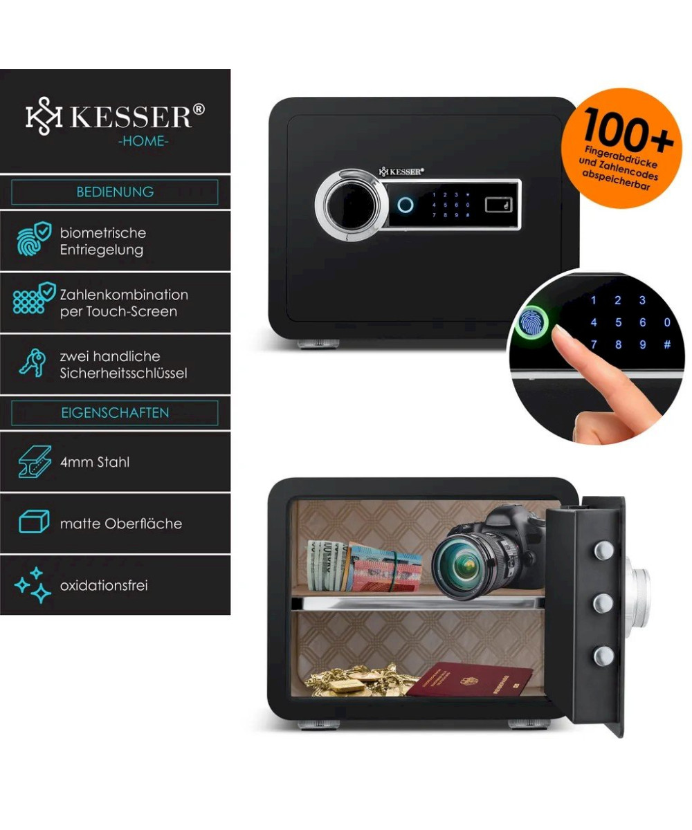KESSER Tresor mit Fingerabdruck Safe Elektronischer Möbeltresor Wandtresor L Schwarz