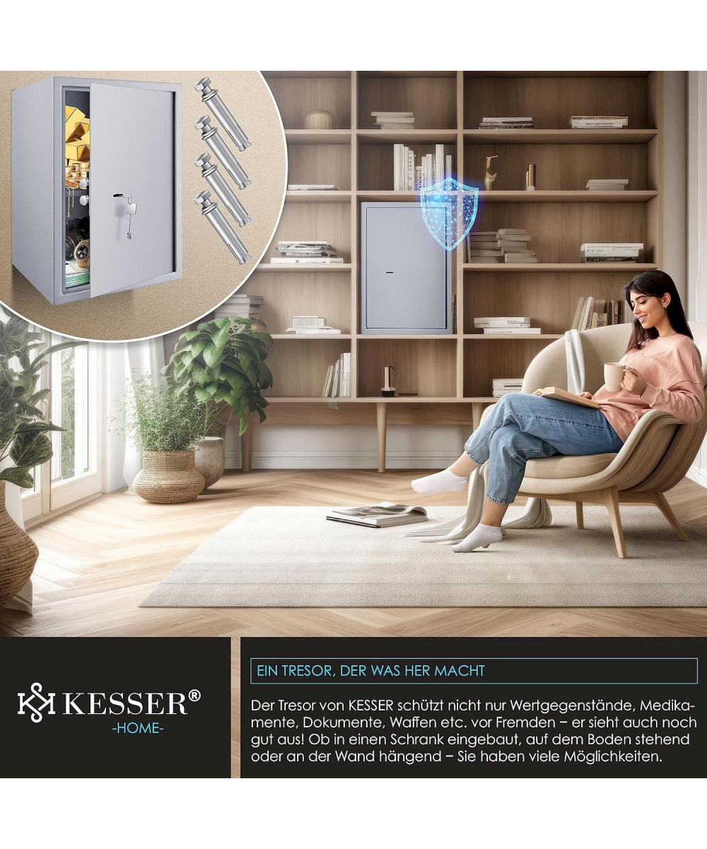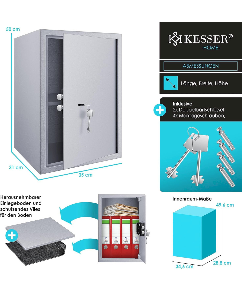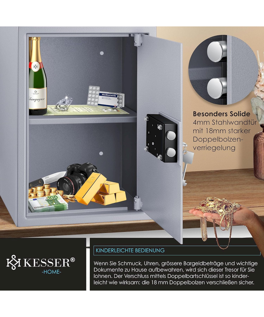 KESSER Tresor Möbeltresor mit Doppelbartschloss 35x50x31cm Silber