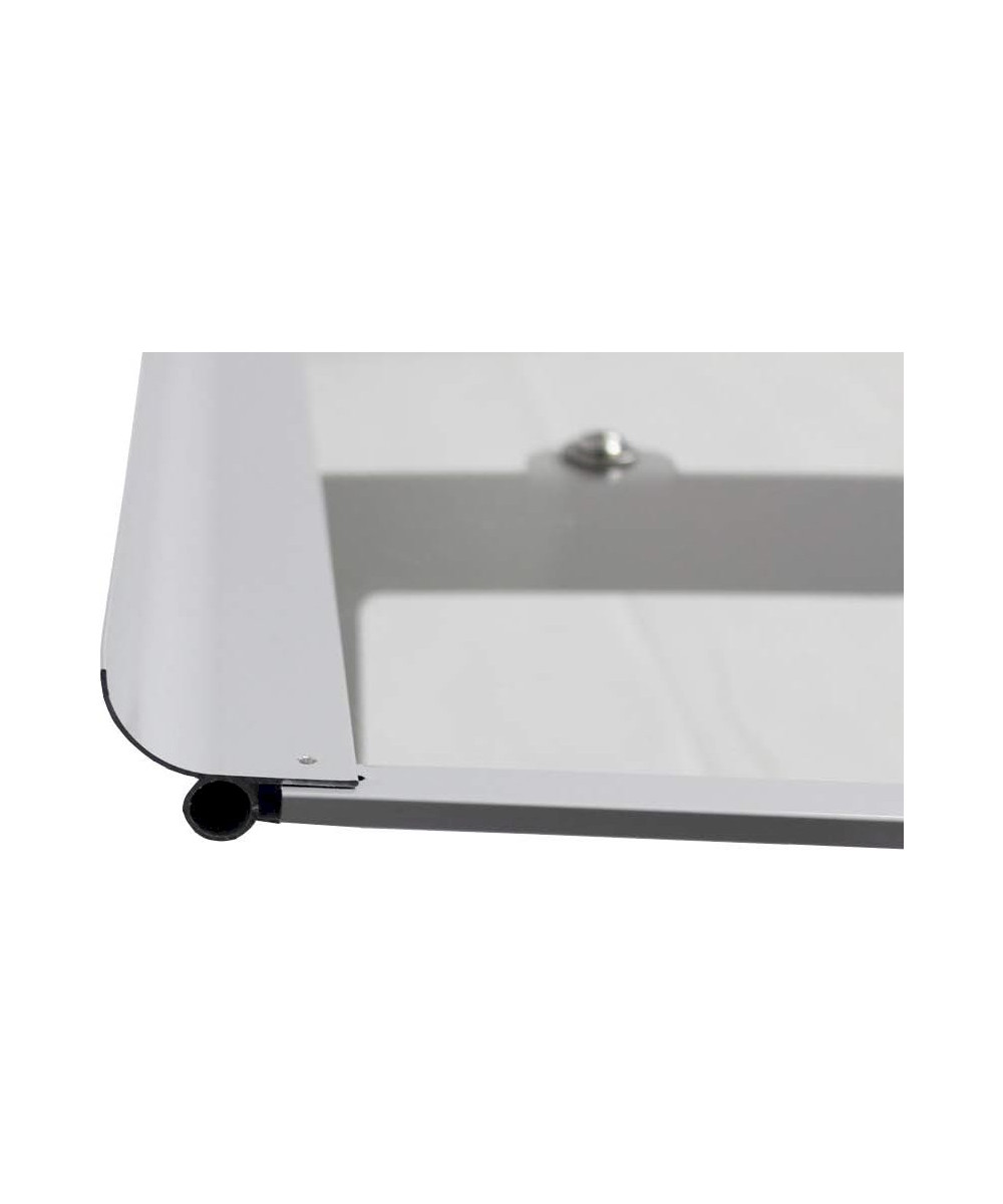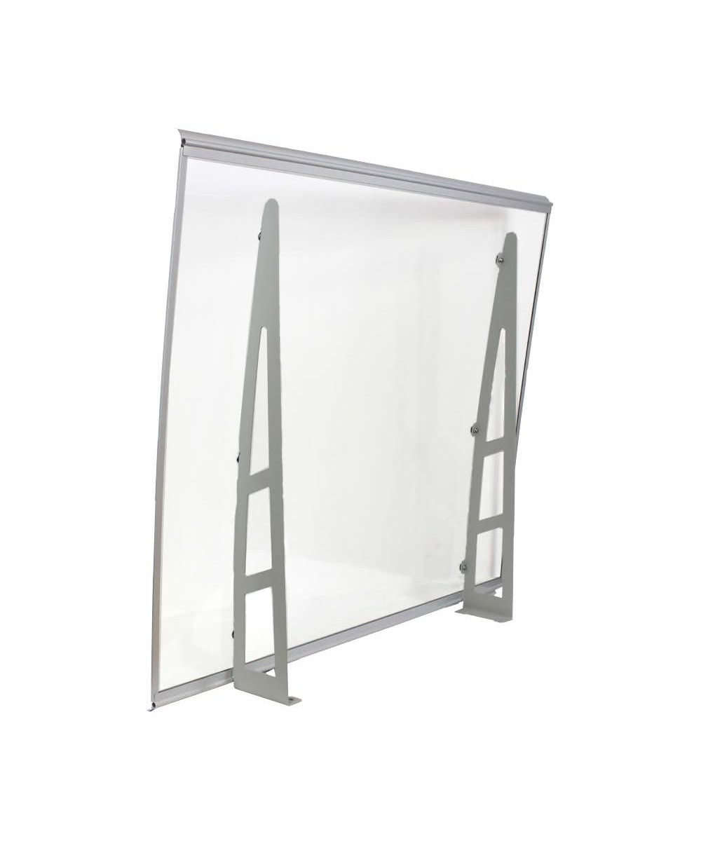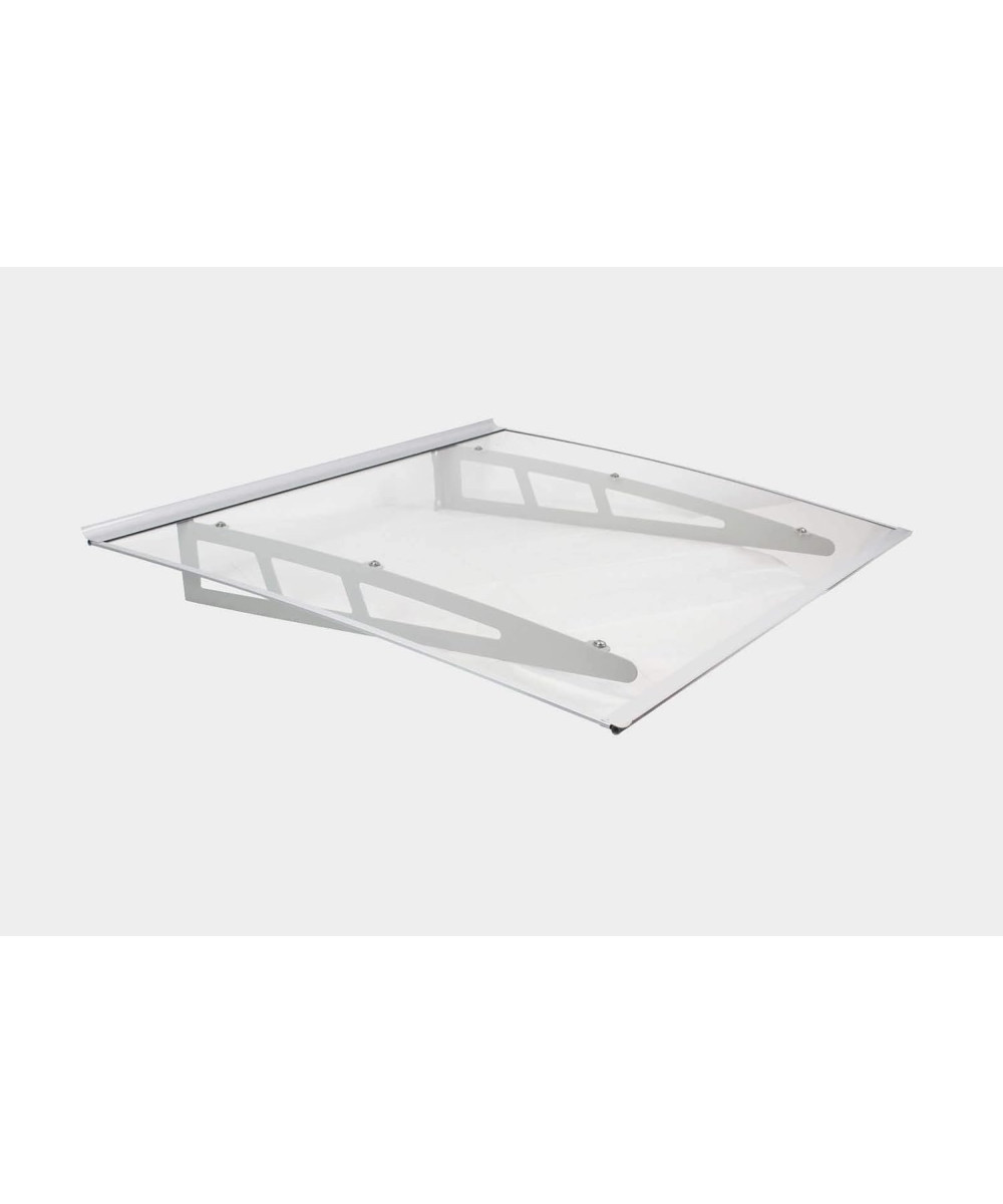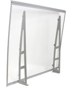 Das universell einsetzbare Vordach besteht aus einer ca. 3mm dicken Polycarbonatplatte, zwei Trägern aus beschichtetem Stahl und einem hochwertigen Kantenschutz aus Aluminium. Es ist damit stoßfest, wasserfest, hitzebeständig, schlagfest, rostfrei und sorgt durch seine Pultbogen-Form für ein problemloses Ablaufen von Regenwasser.
