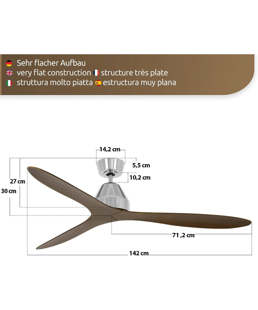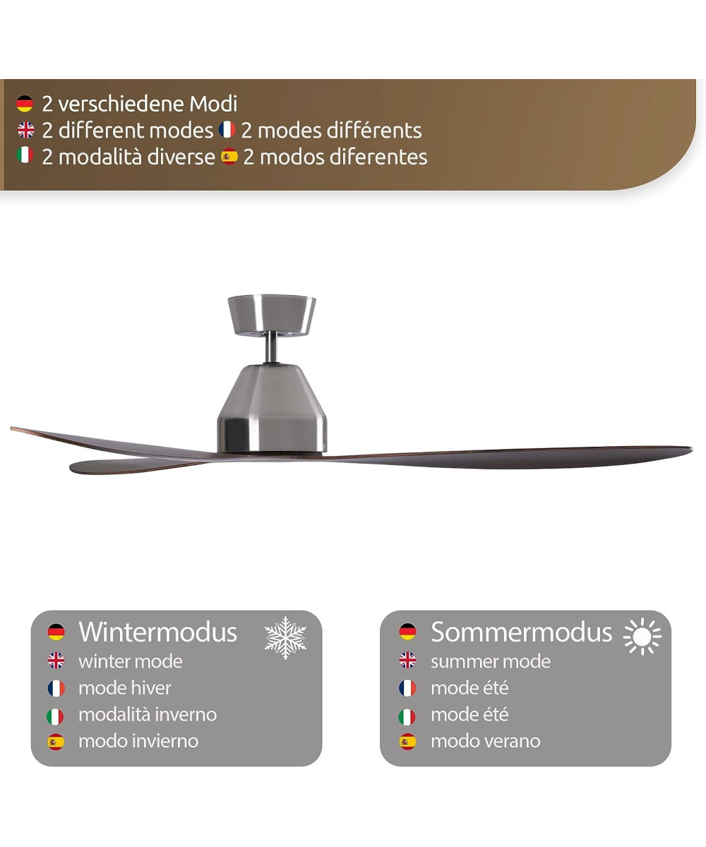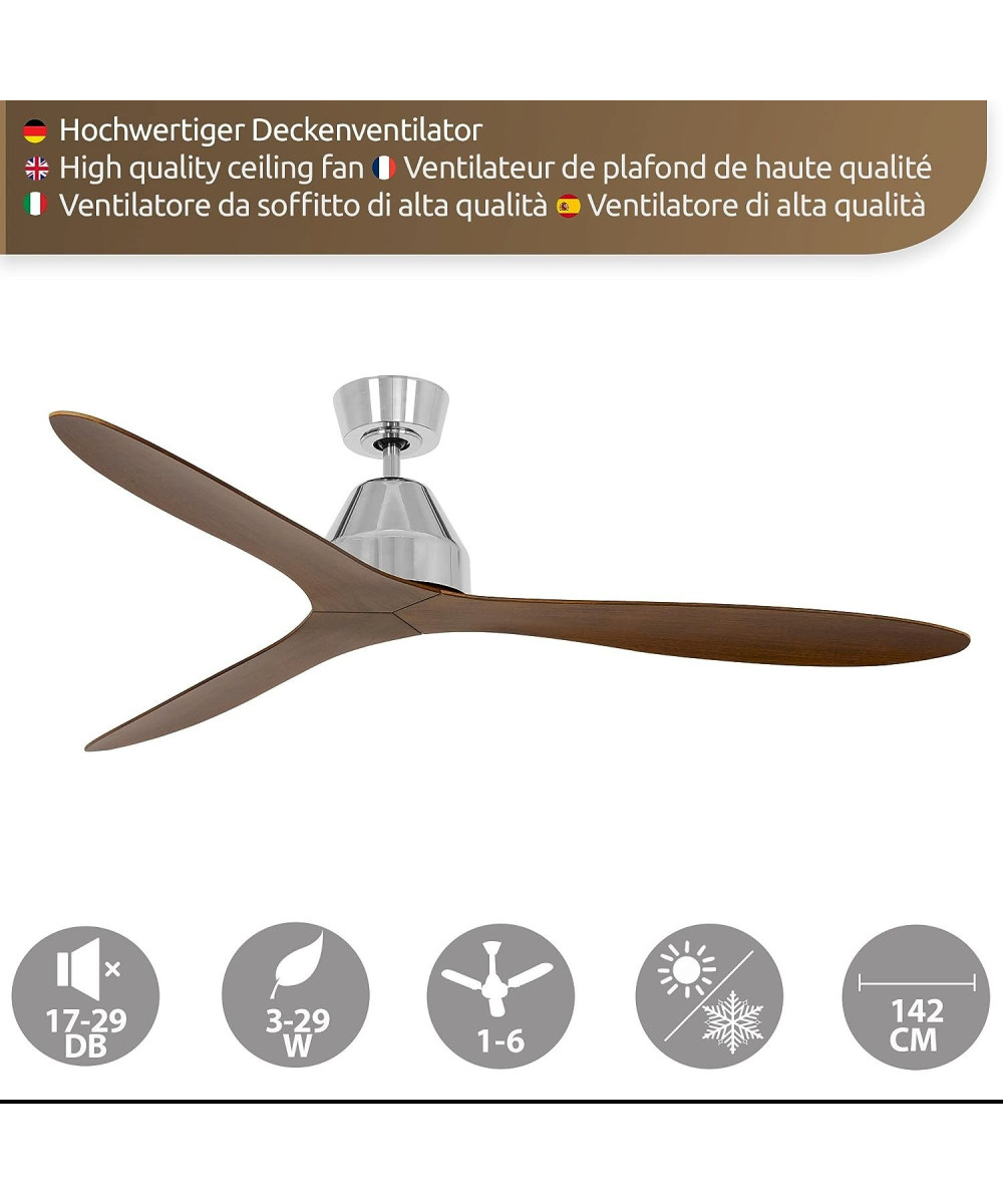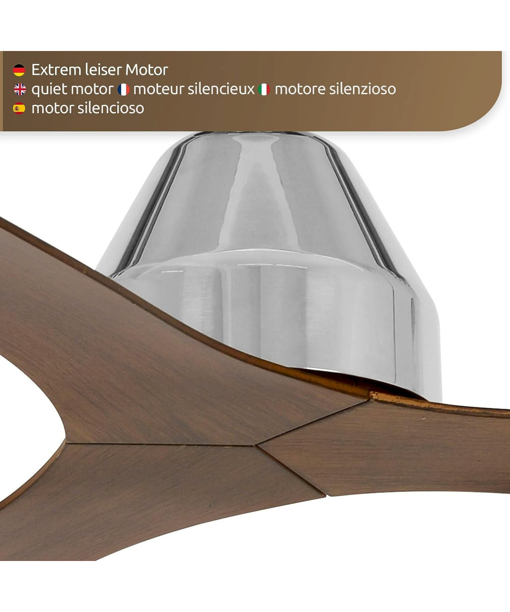 Lucci Air Whitehaven Energiespar Deckenventilator 142 cm gebürstetes Chrom / dunkles Koa