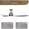 Der Deckenventilator Whitehaven hat einen sparsamen DC Motor. Eine 6 Speed Fernbedienung ist im Lieferumfang enthalten, mit ihr lässt sich auch bequem vom Sommer- auf Wintermodus umschalten. Mit seinem Durchmesser von 142 cm ist er ideal für Räume mit einer Größe von bis zu 40m². Dank der erwähnten Sommer/Winter-Funktion hilft er in beiden Jahreszeiten die Energiekosten zu senken.