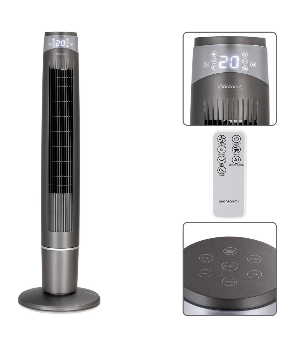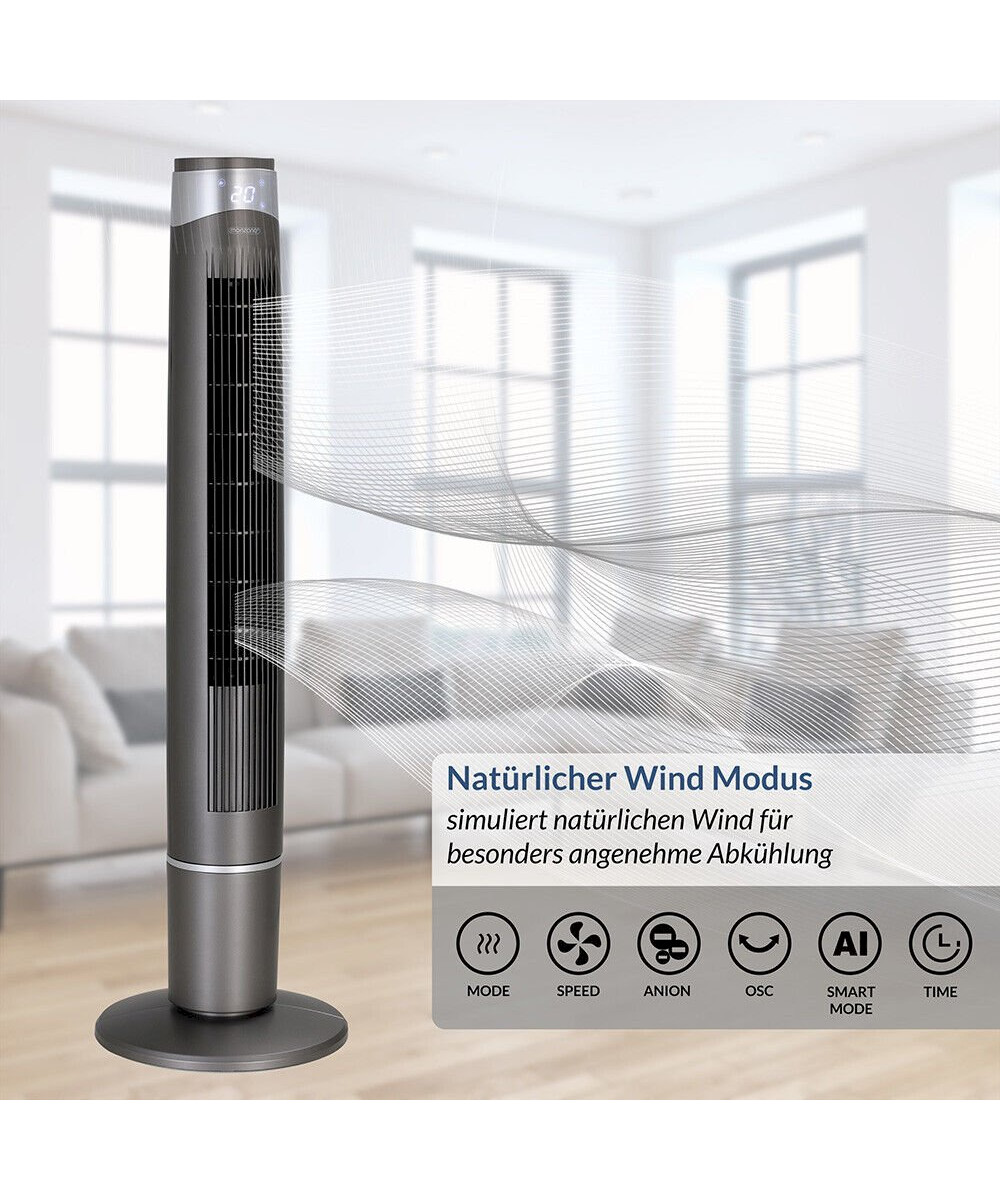 Der Turmventilator MZTV120 der Marke monzana® mit Smartfunktion wählt die Geschwindigkeit passend zur Raumtemperatur automatisch aus.